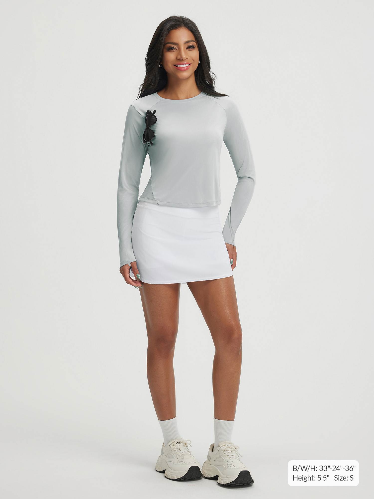 – Cropped & slim fit: 20 (S) length with a flattering crew neck. curved hem. and seams that shape your waist while allowing full freedom of movement.