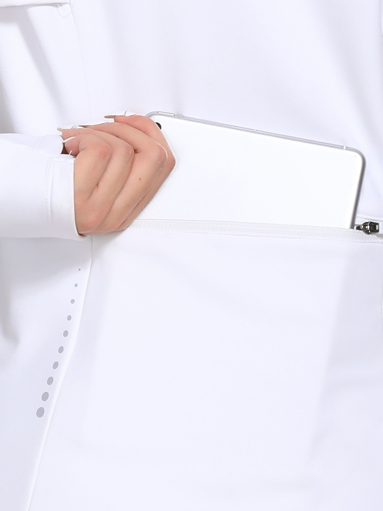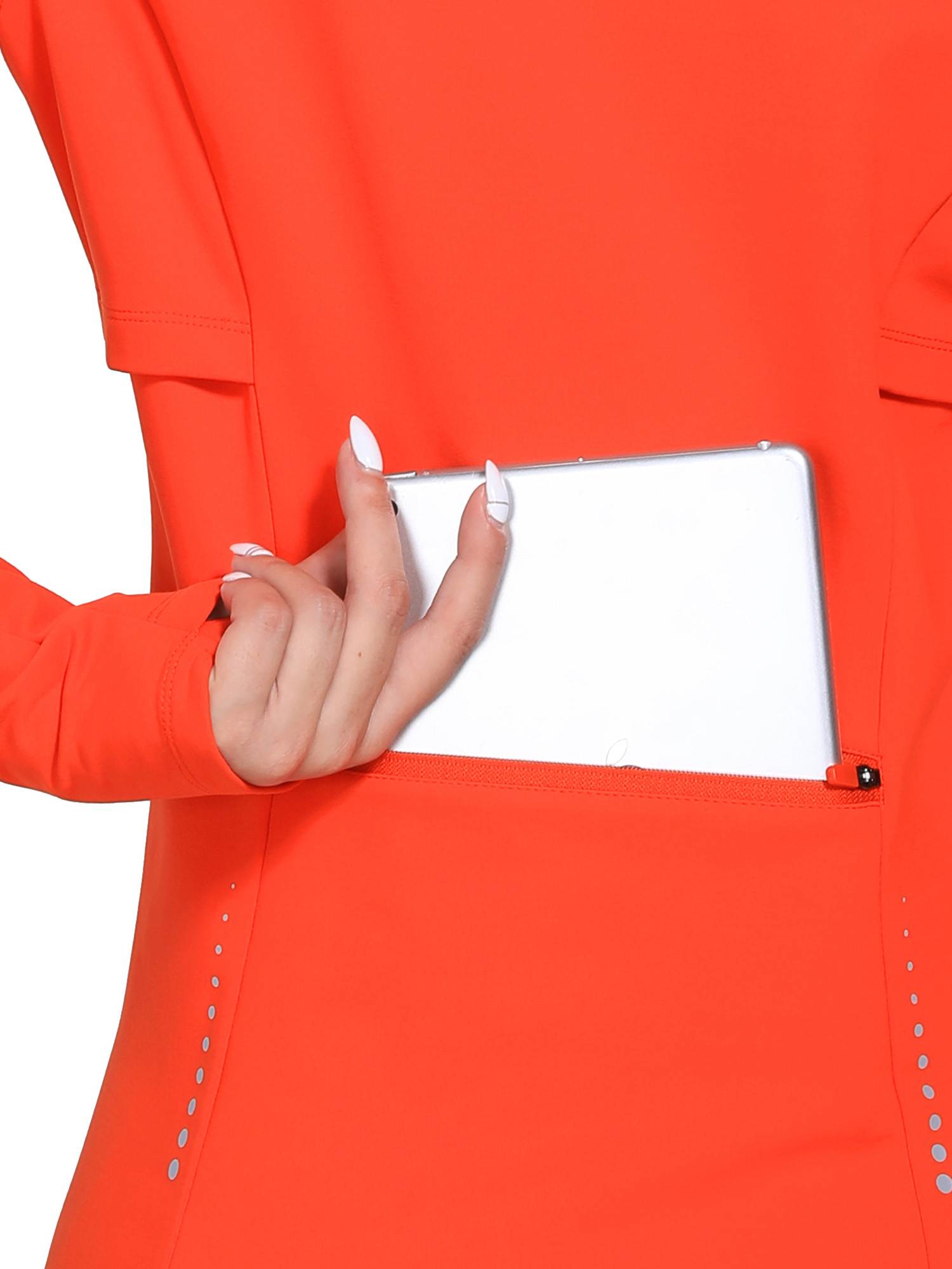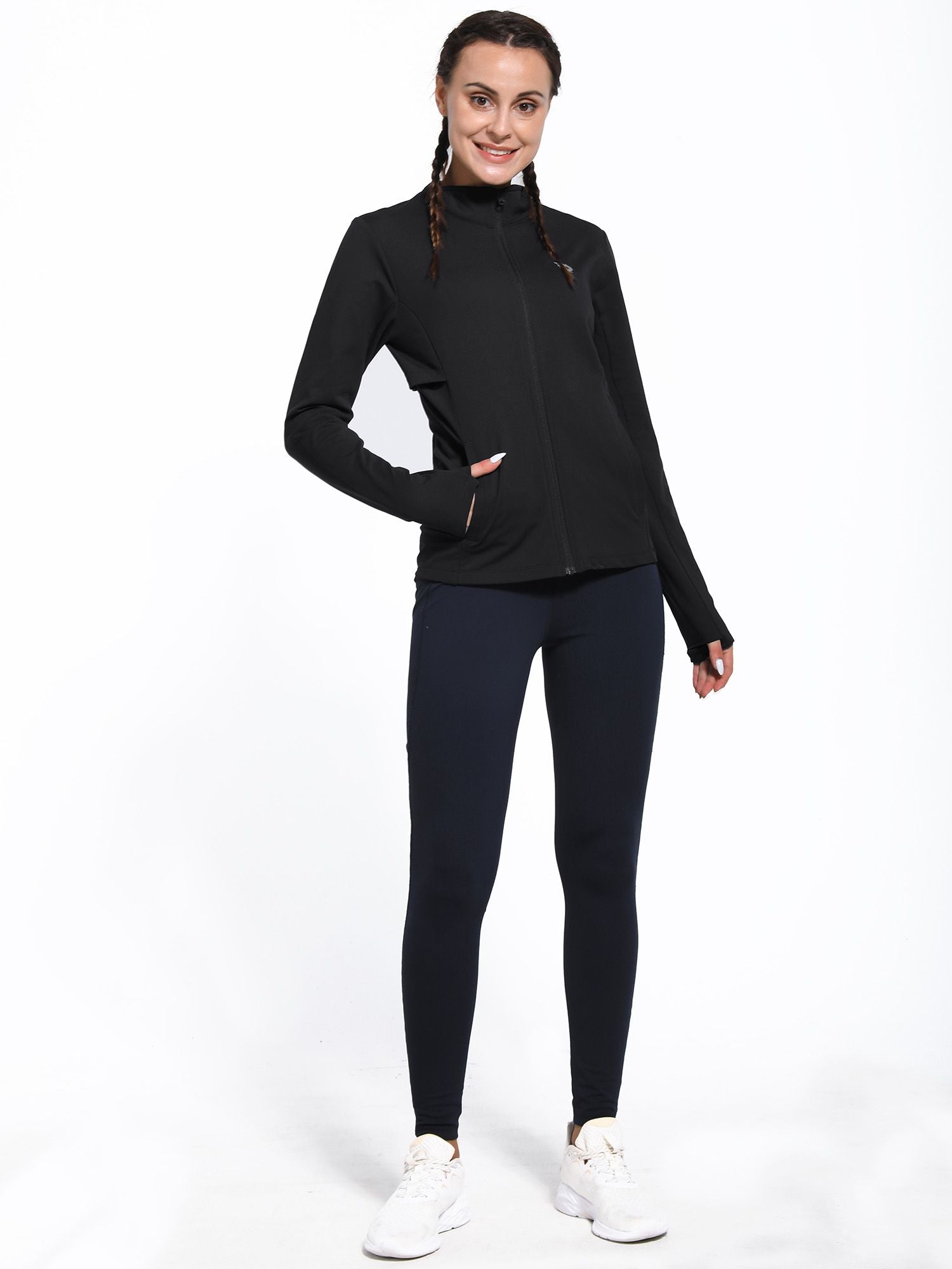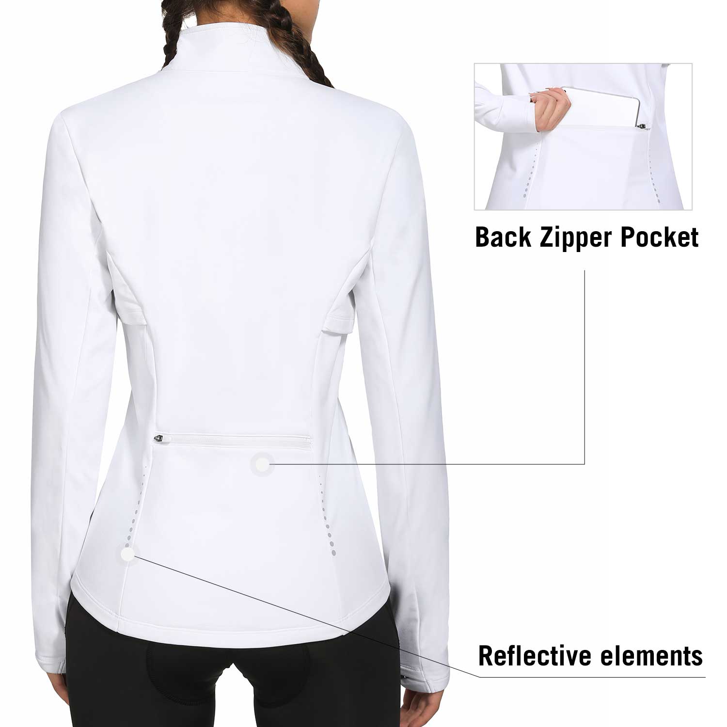 • Full Zipper: Full-zip style makes it easy to remove mid-run if you end up getting a little too warm. The length back design gives you a flattering silhouette and shows your curves