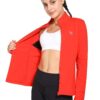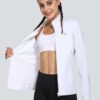 • Thumb Holes: These women’s running jackets are designed with a high collar and thumbholes to help keep your sleeves down and guard against wind chill. Hidden underarm mesh vents provide ventilation and prevent overheating