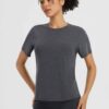 - Breathable & Soft: Designed to wick moisture quickly. these women’s short-sleeve workout tops keep you comfortable and dry. enhancing your performance during workouts.
