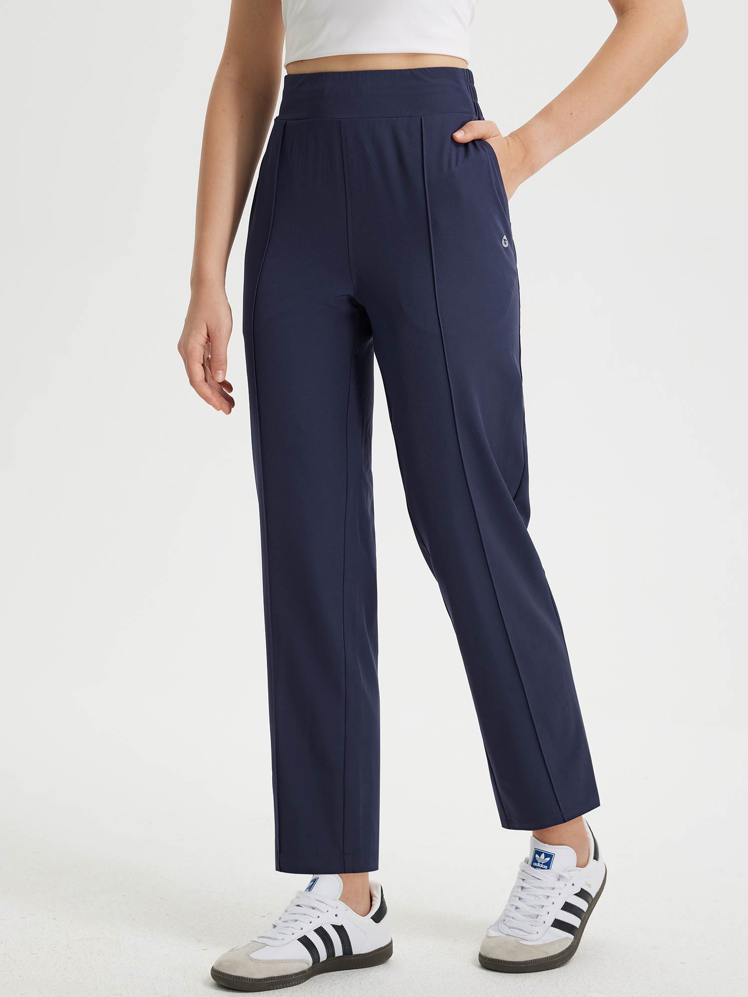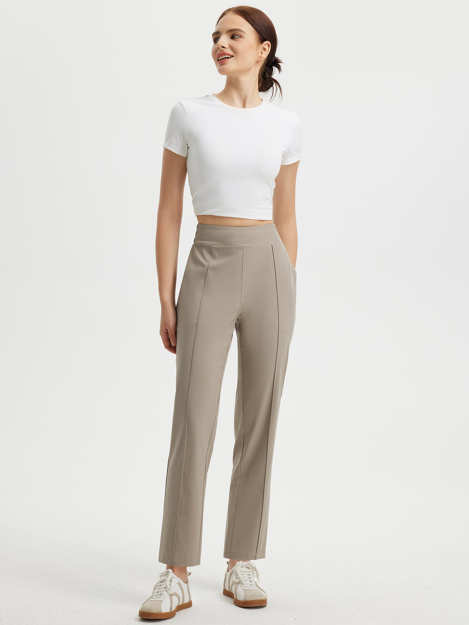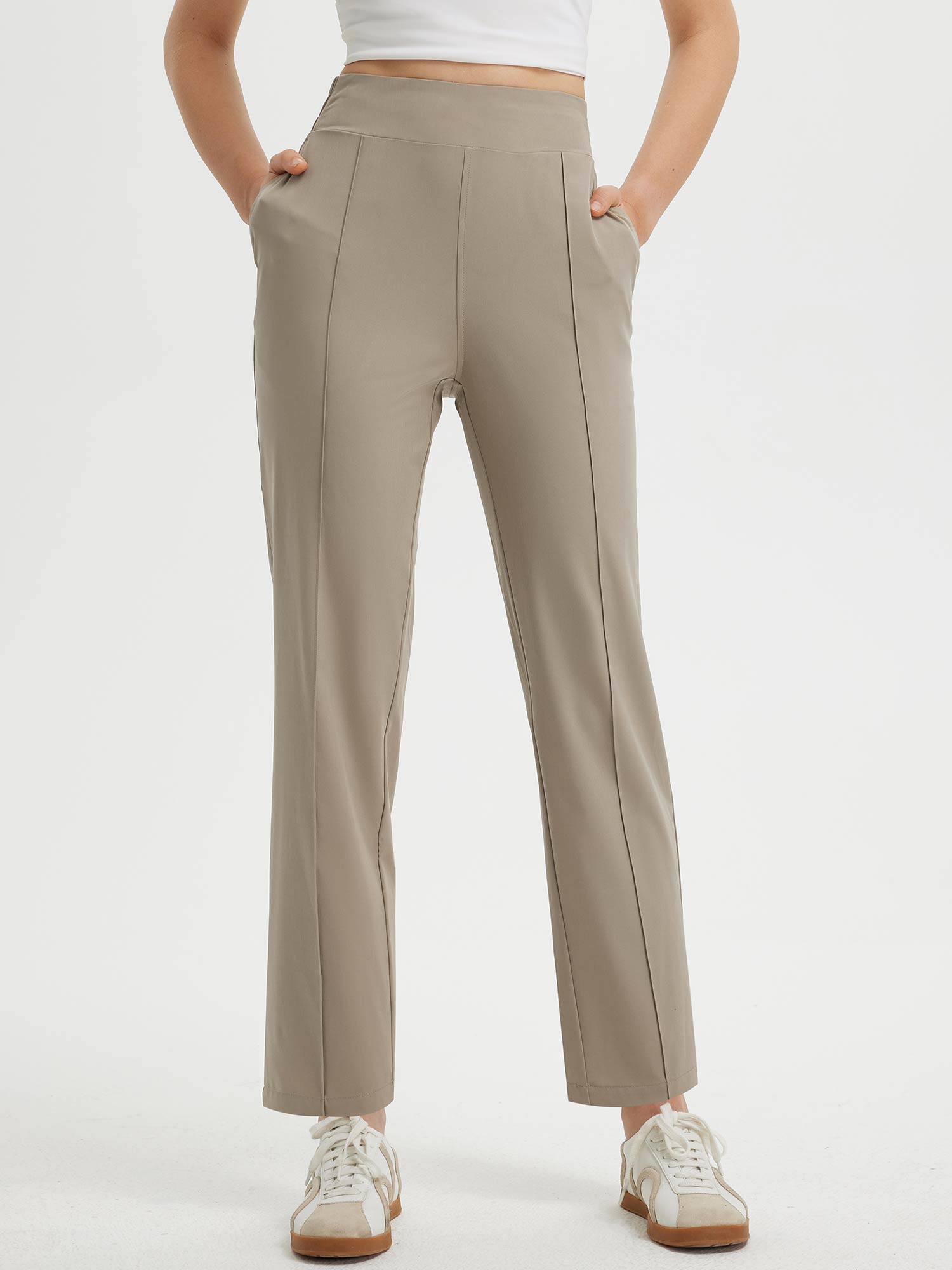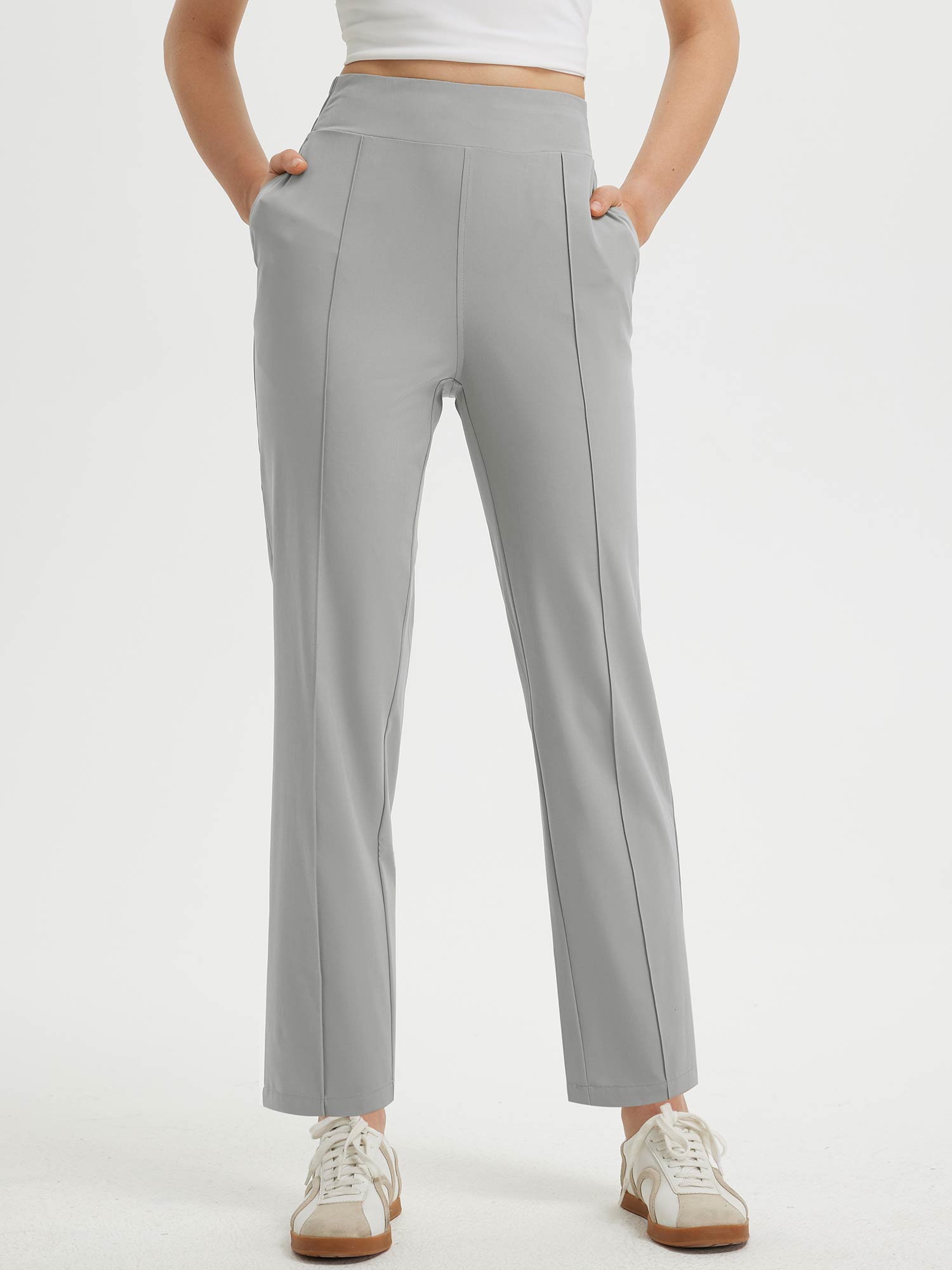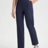 - Flattering Fit: Slim. ankle-length design with a center seam elongates the legs. The flat front and elastic-waisted back offer a secure and comfortable fit that adapts to your body.