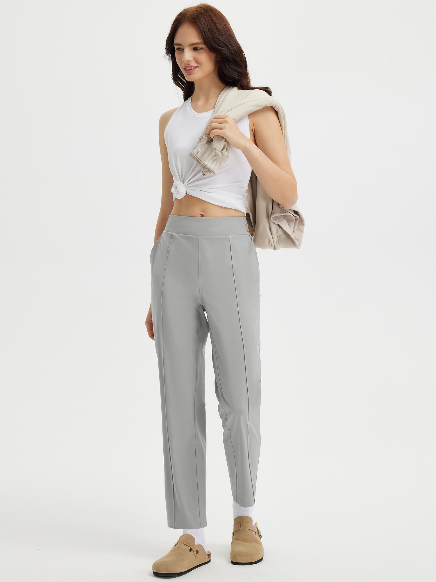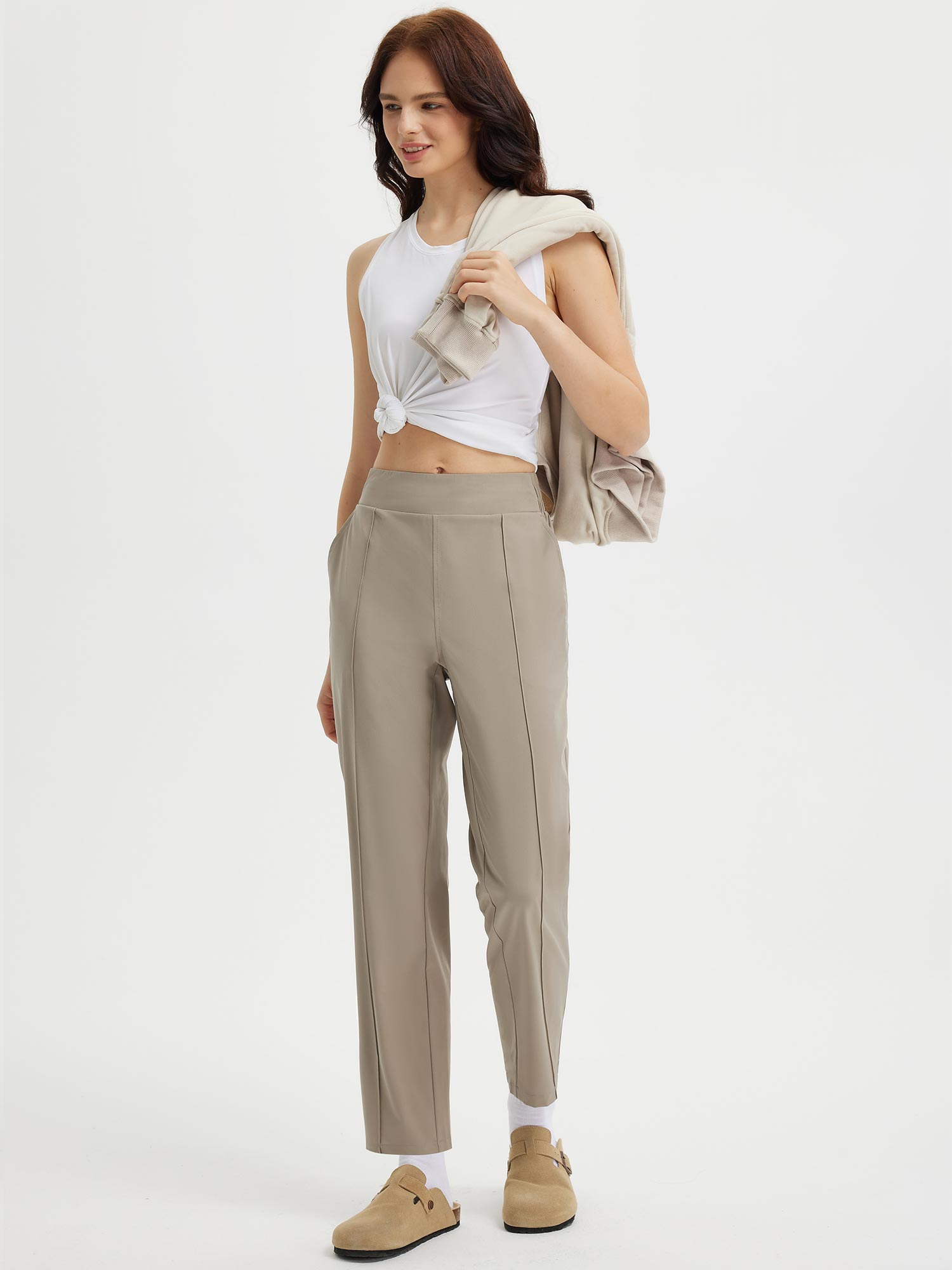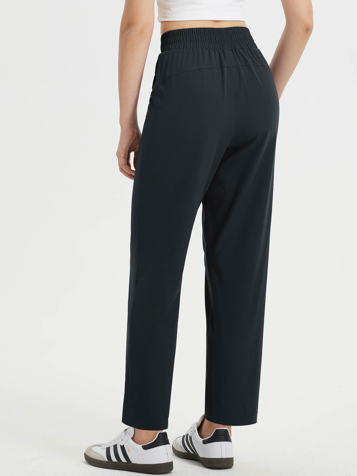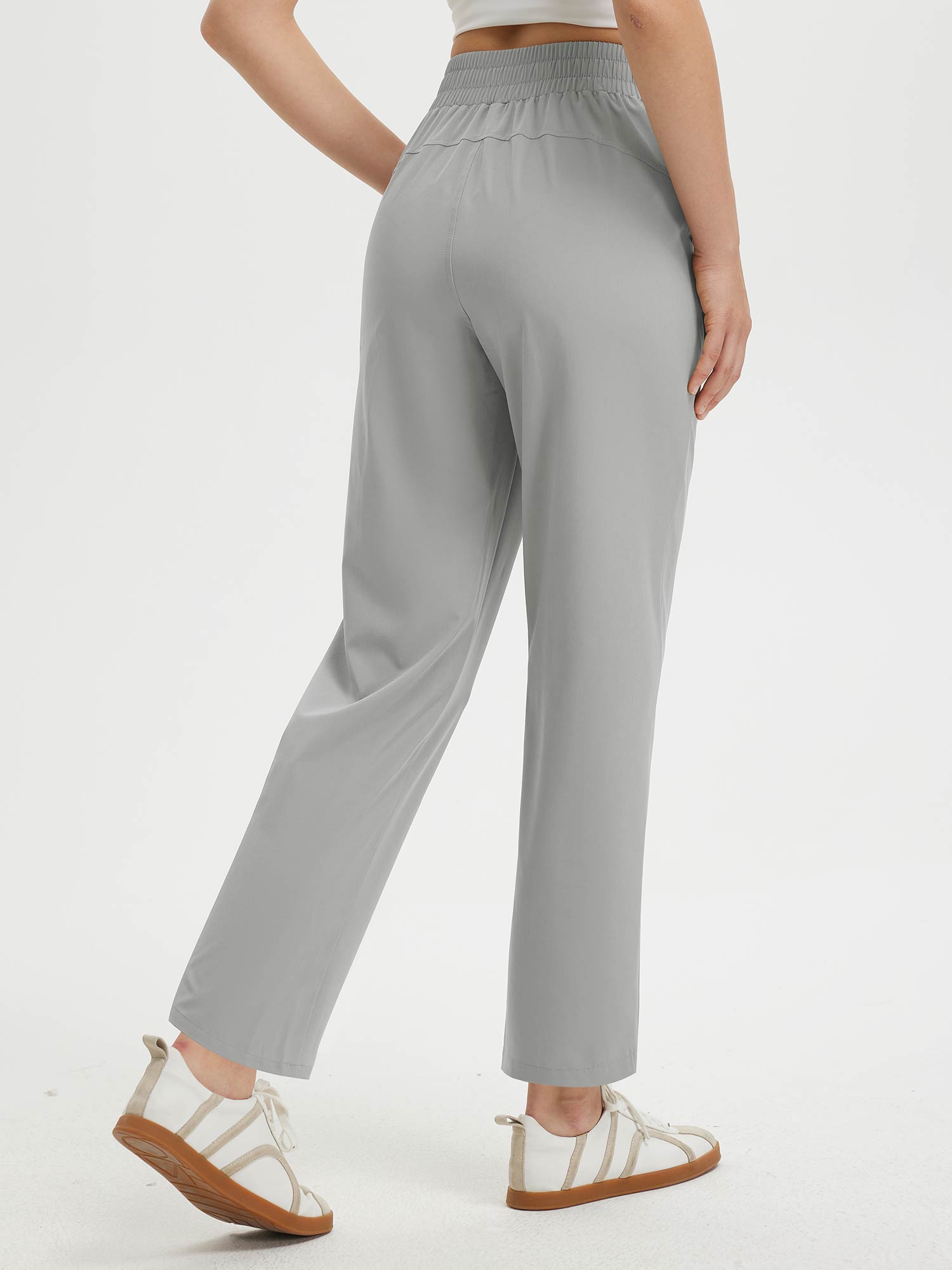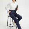 - Flattering Fit: Slim. ankle-length design with a center seam elongates the legs. The flat front and elastic-waisted back offer a secure and comfortable fit that adapts to your body.