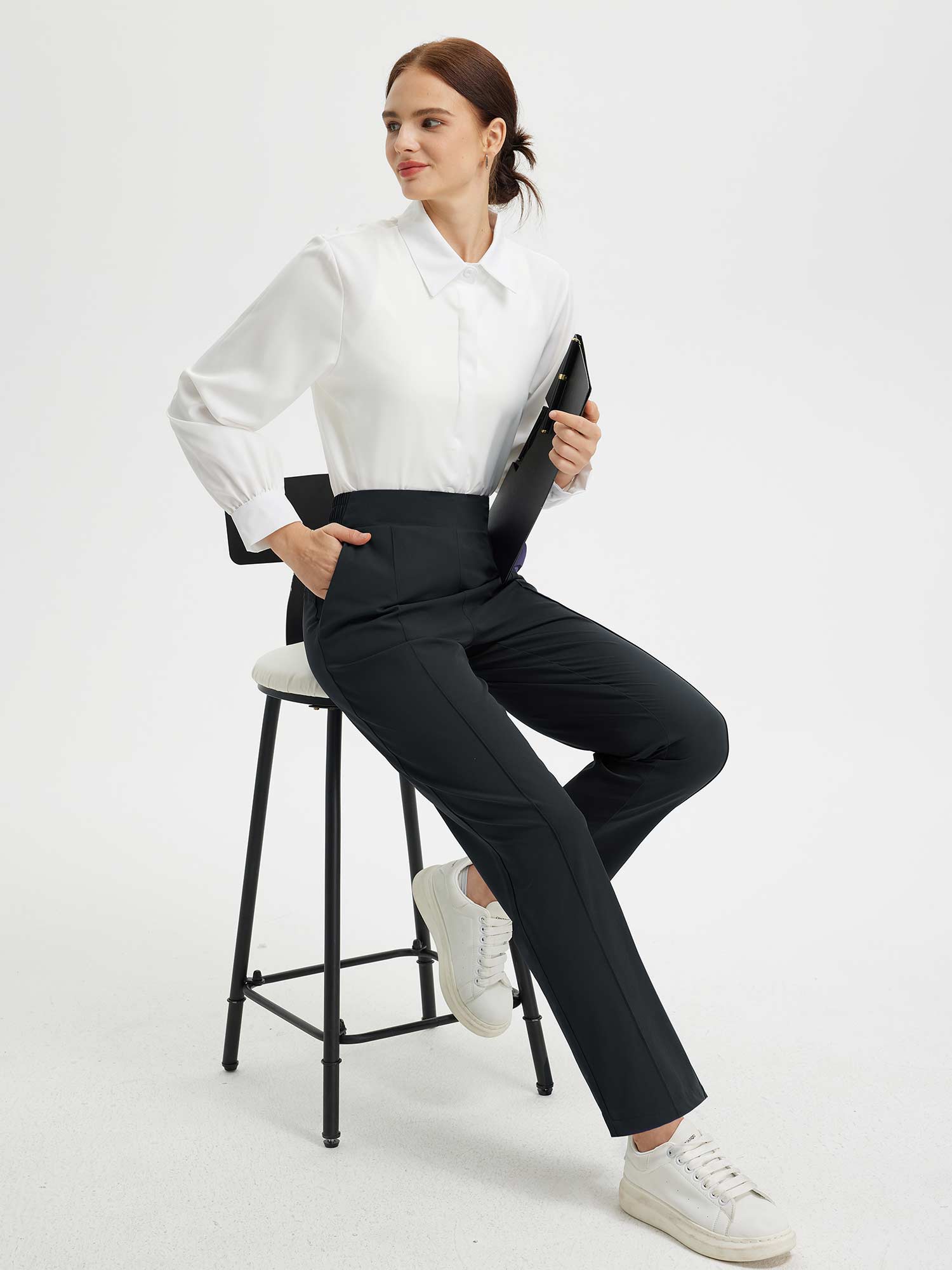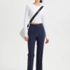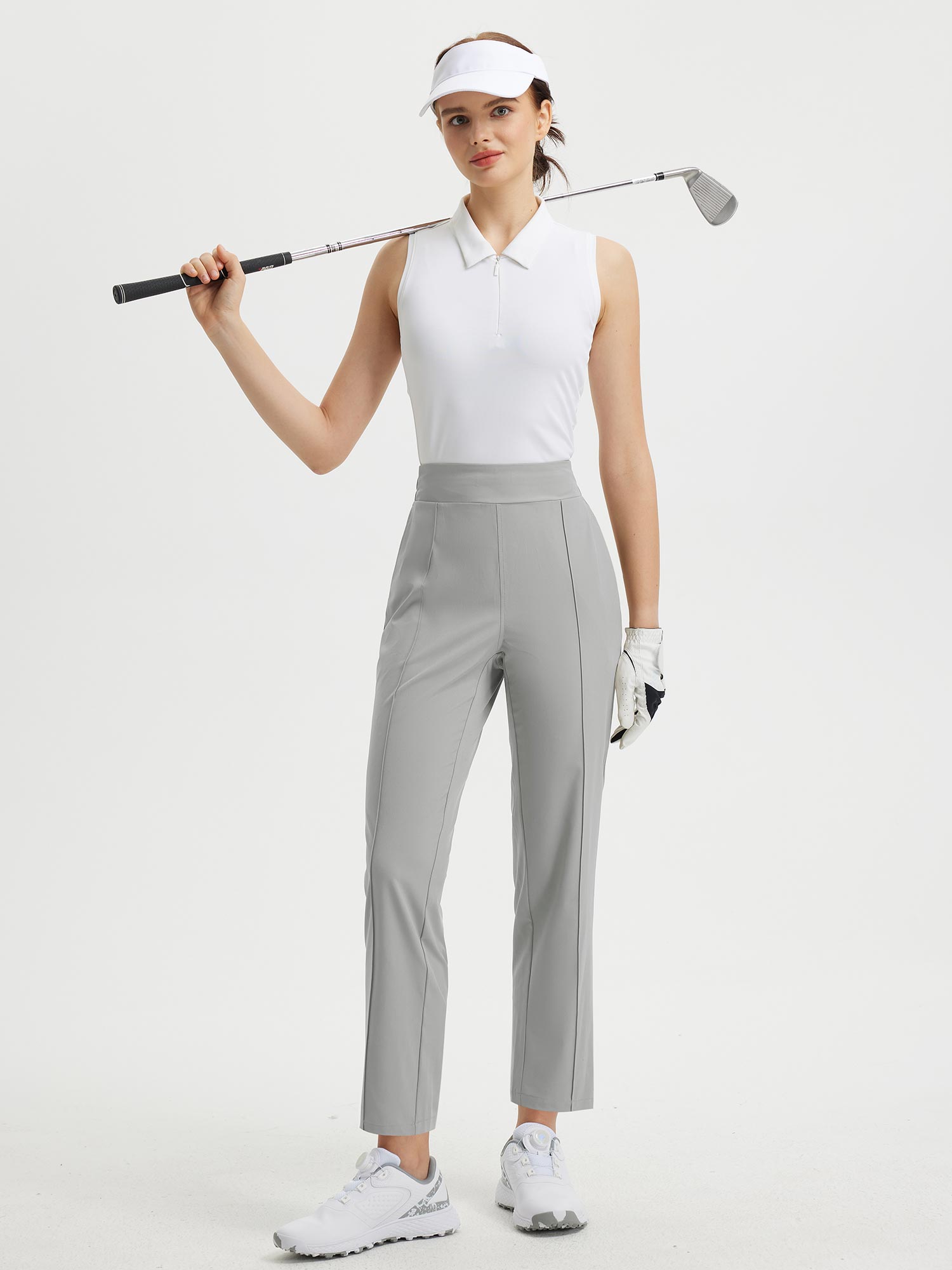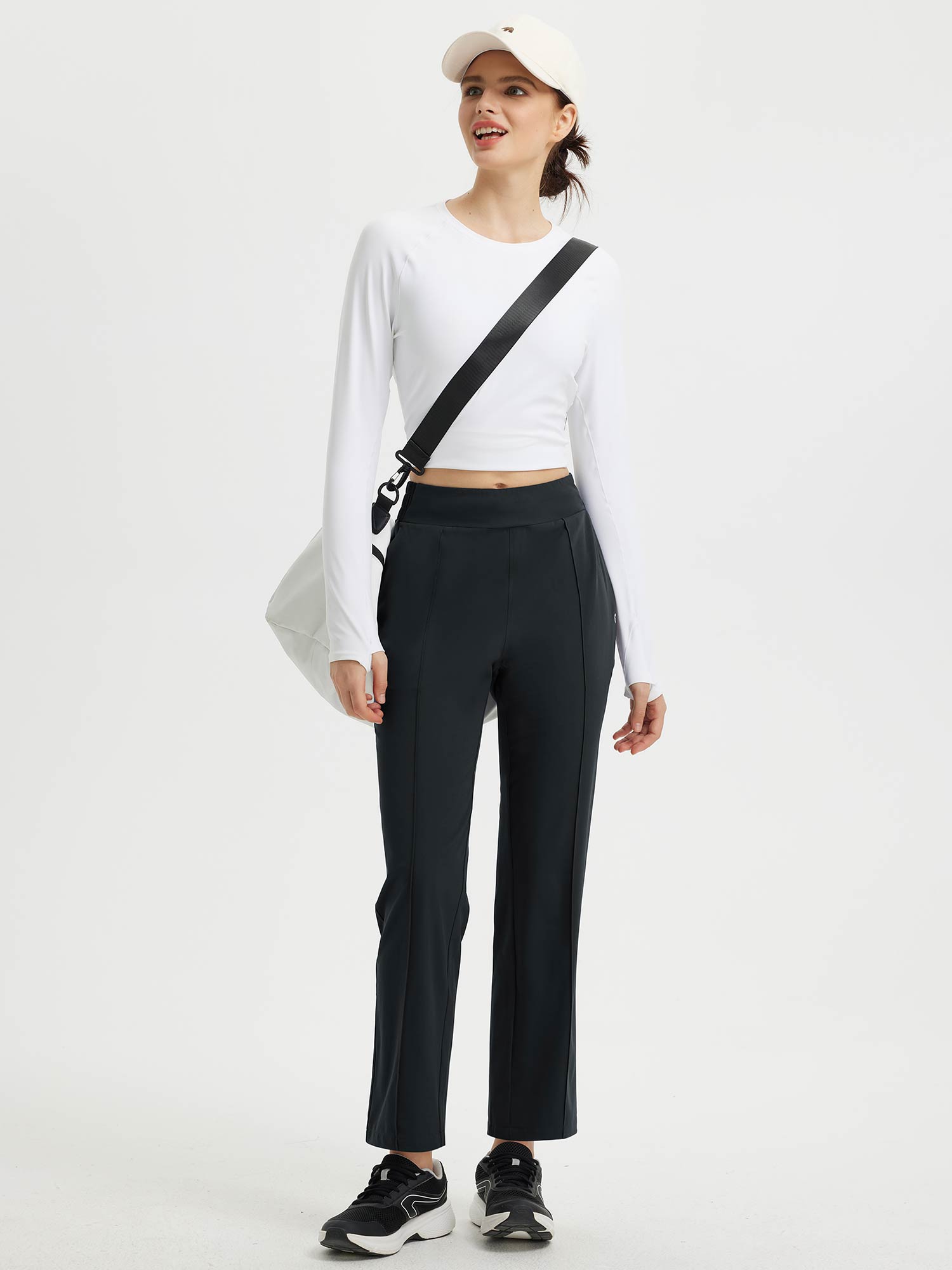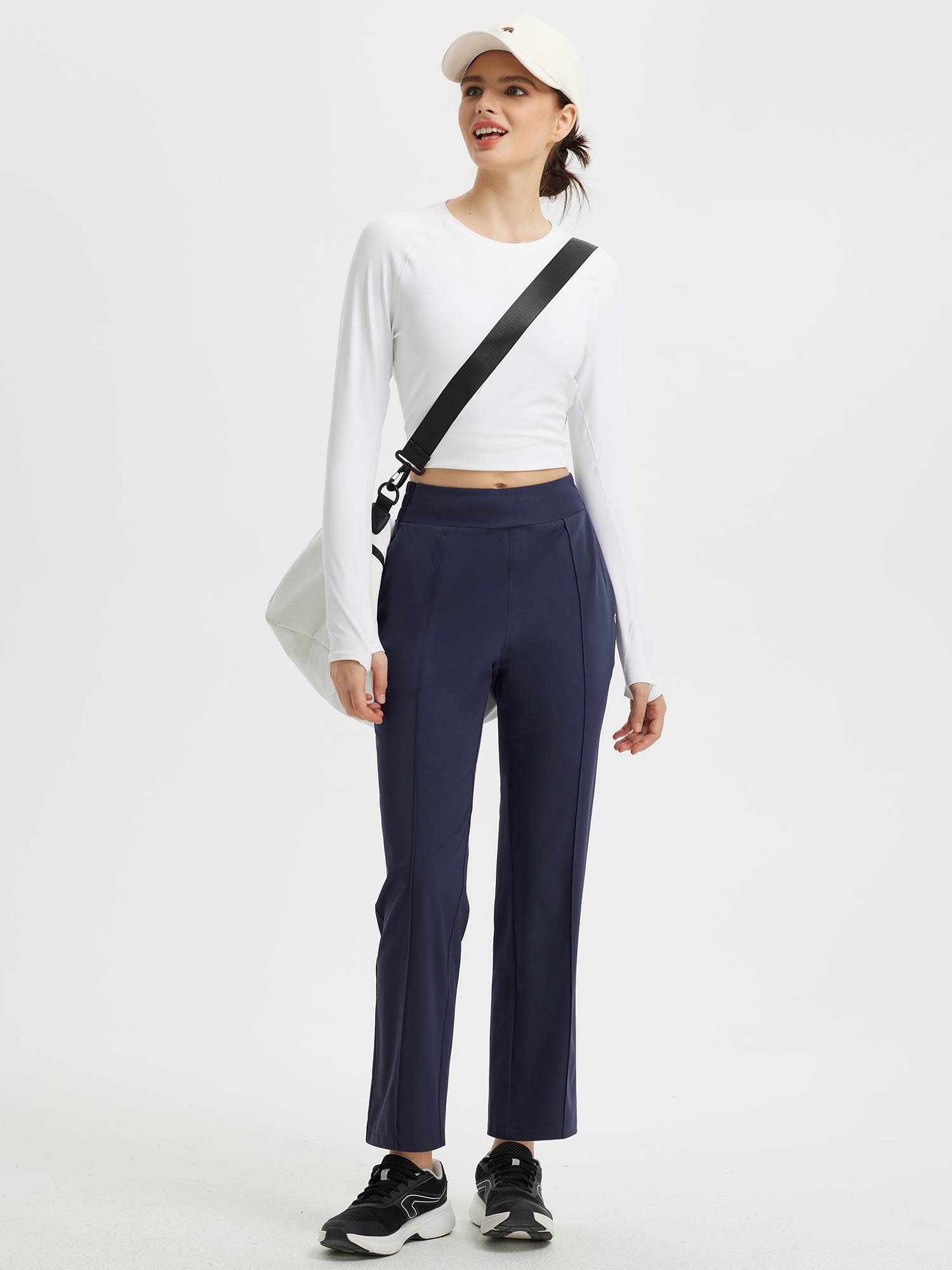 - Flattering Fit: Slim. ankle-length design with a center seam elongates the legs. The flat front and elastic-waisted back offer a secure and comfortable fit that adapts to your body.
