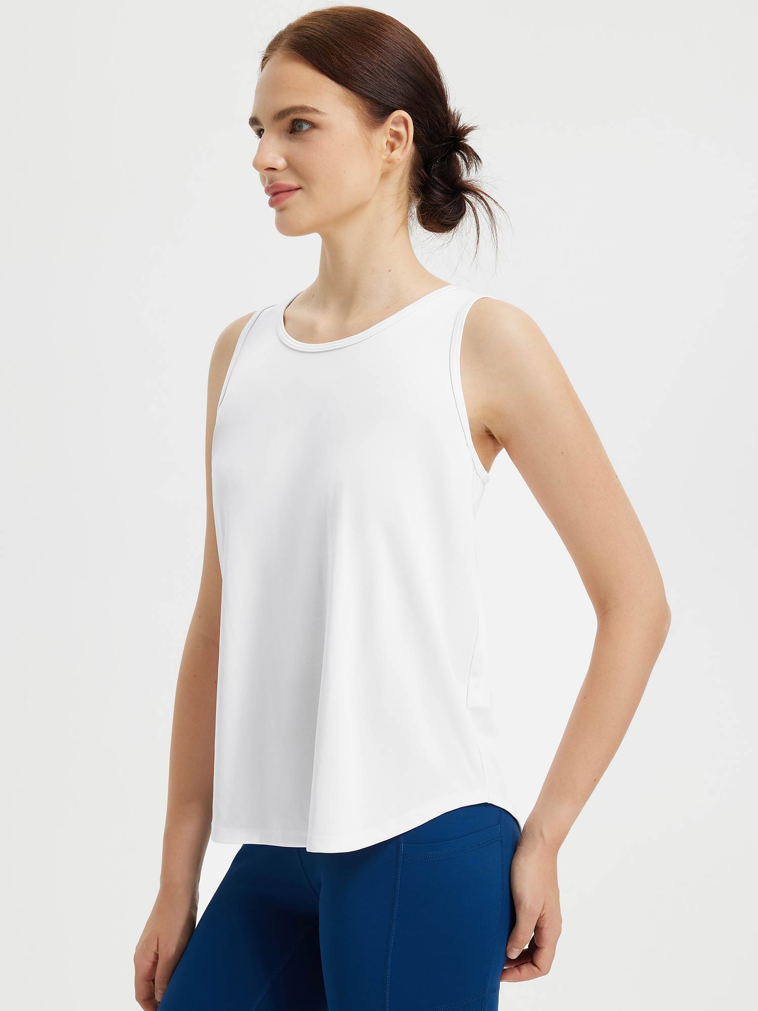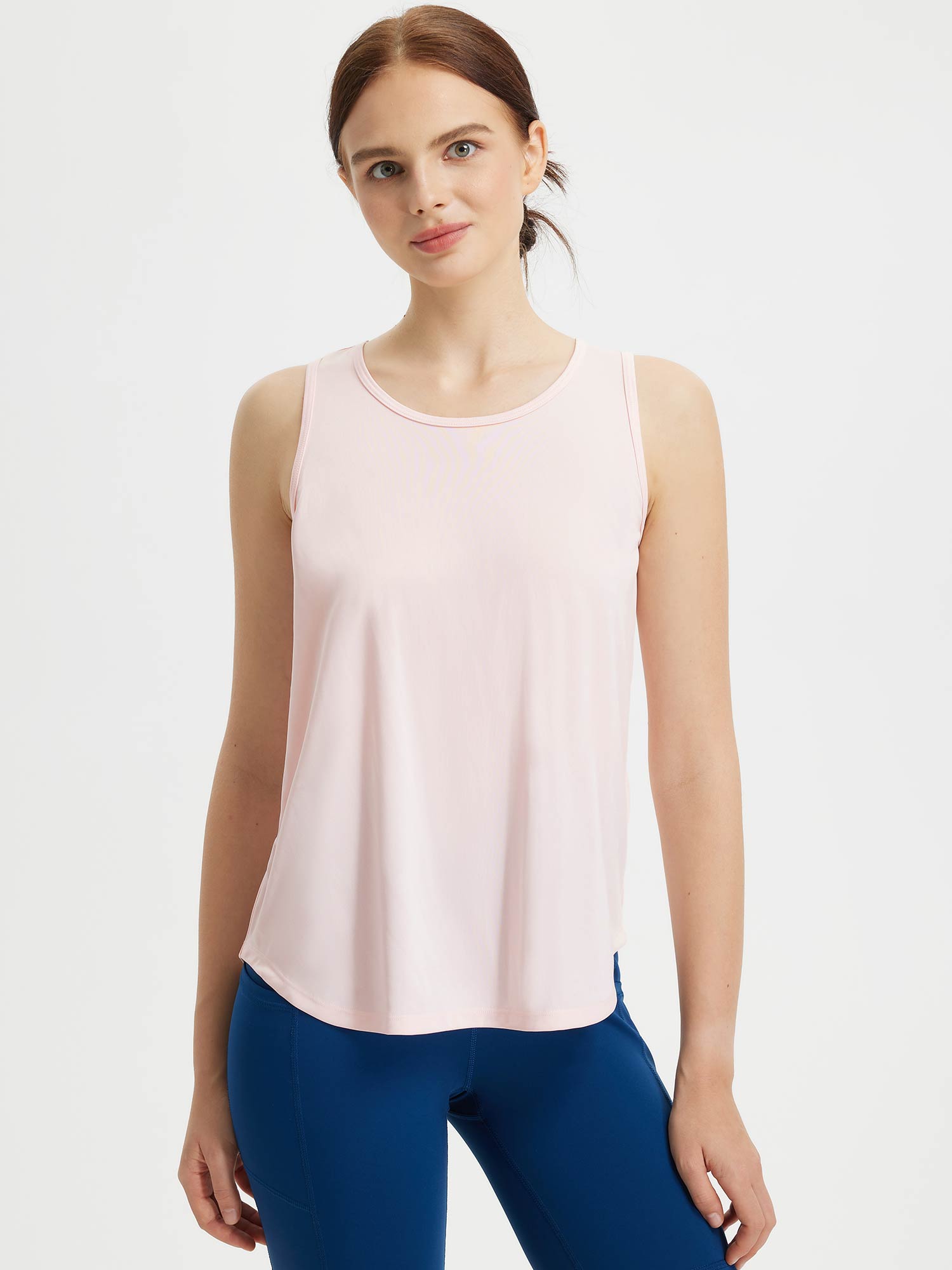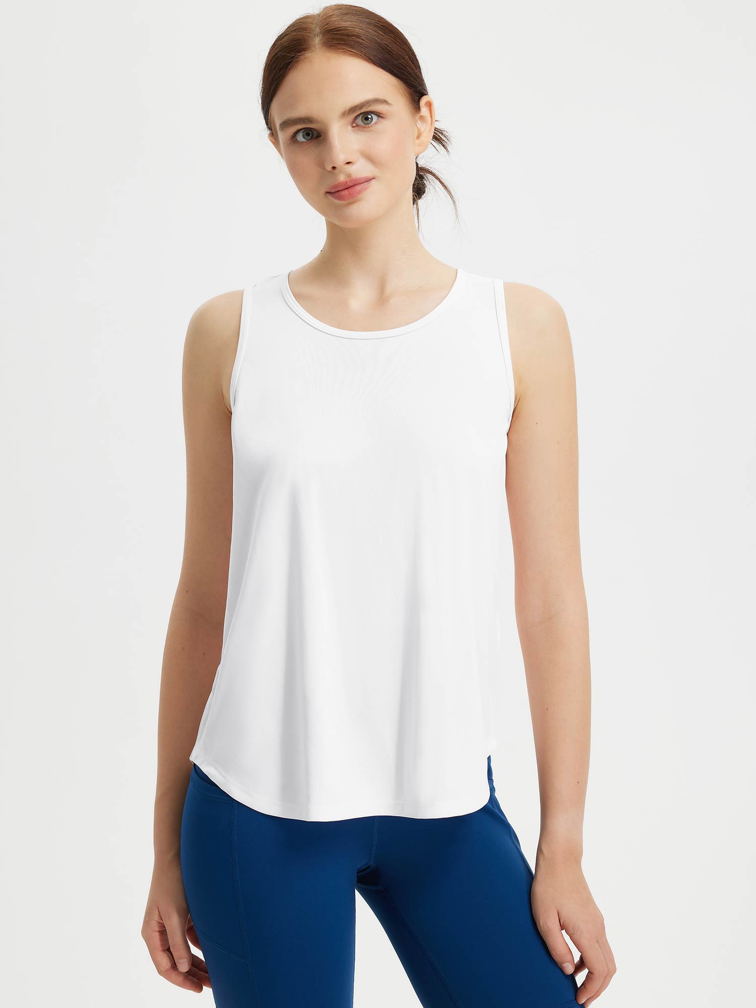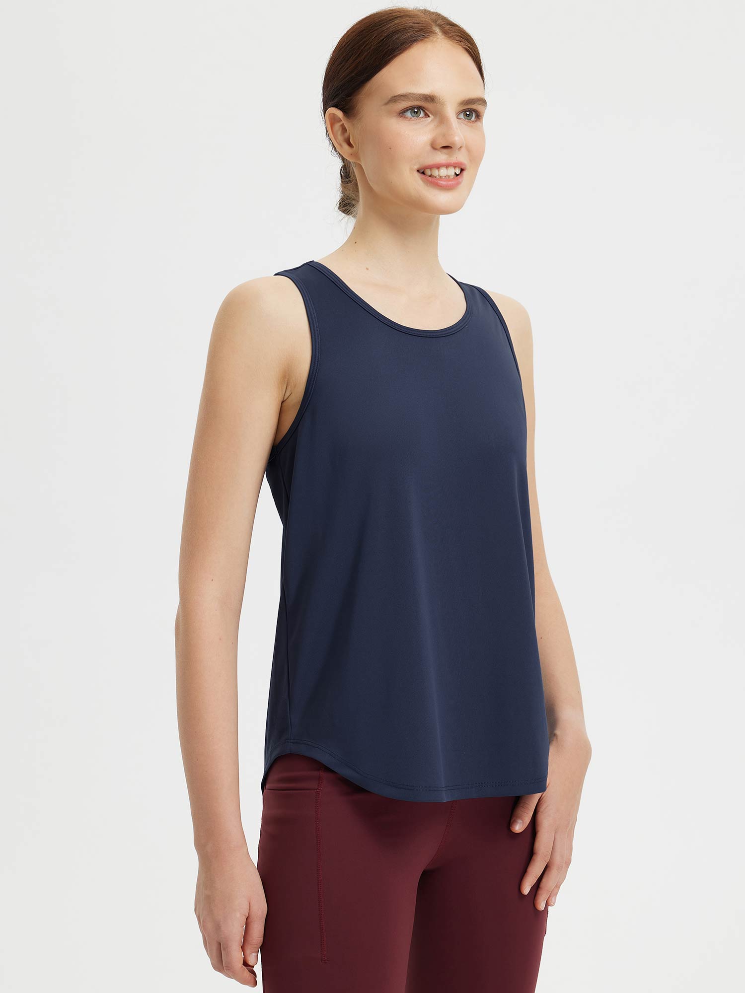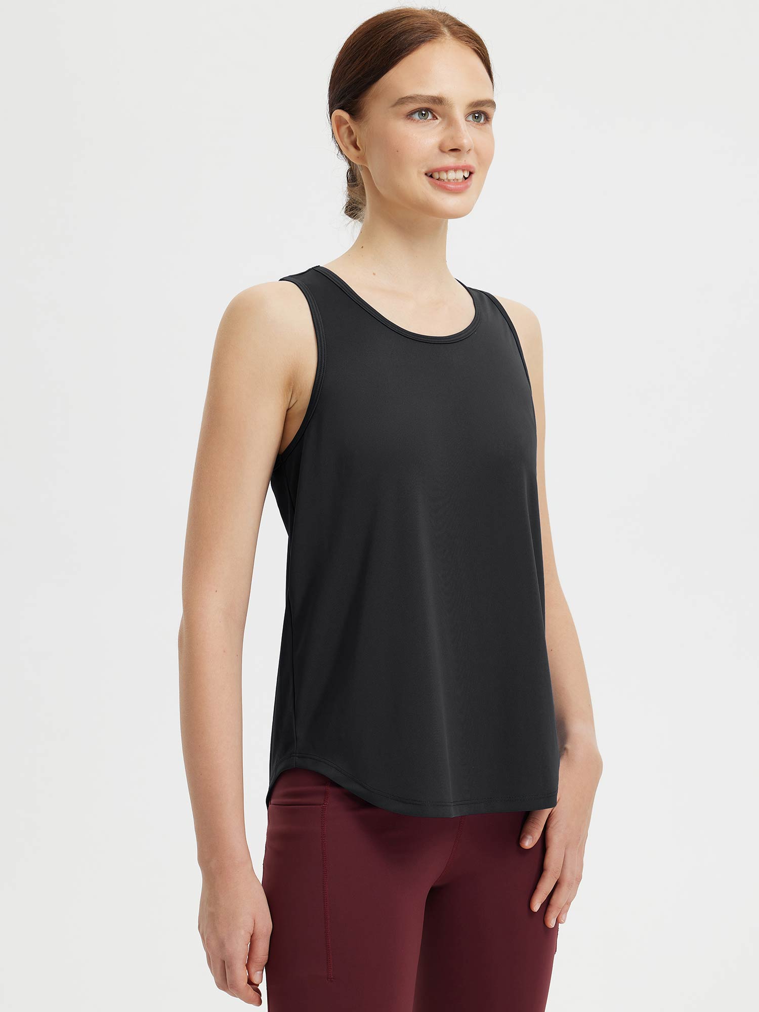 • Flattering Back: Drapes beautifully for a flattering look with a racerback design perfect for sports.
