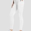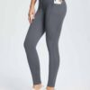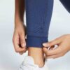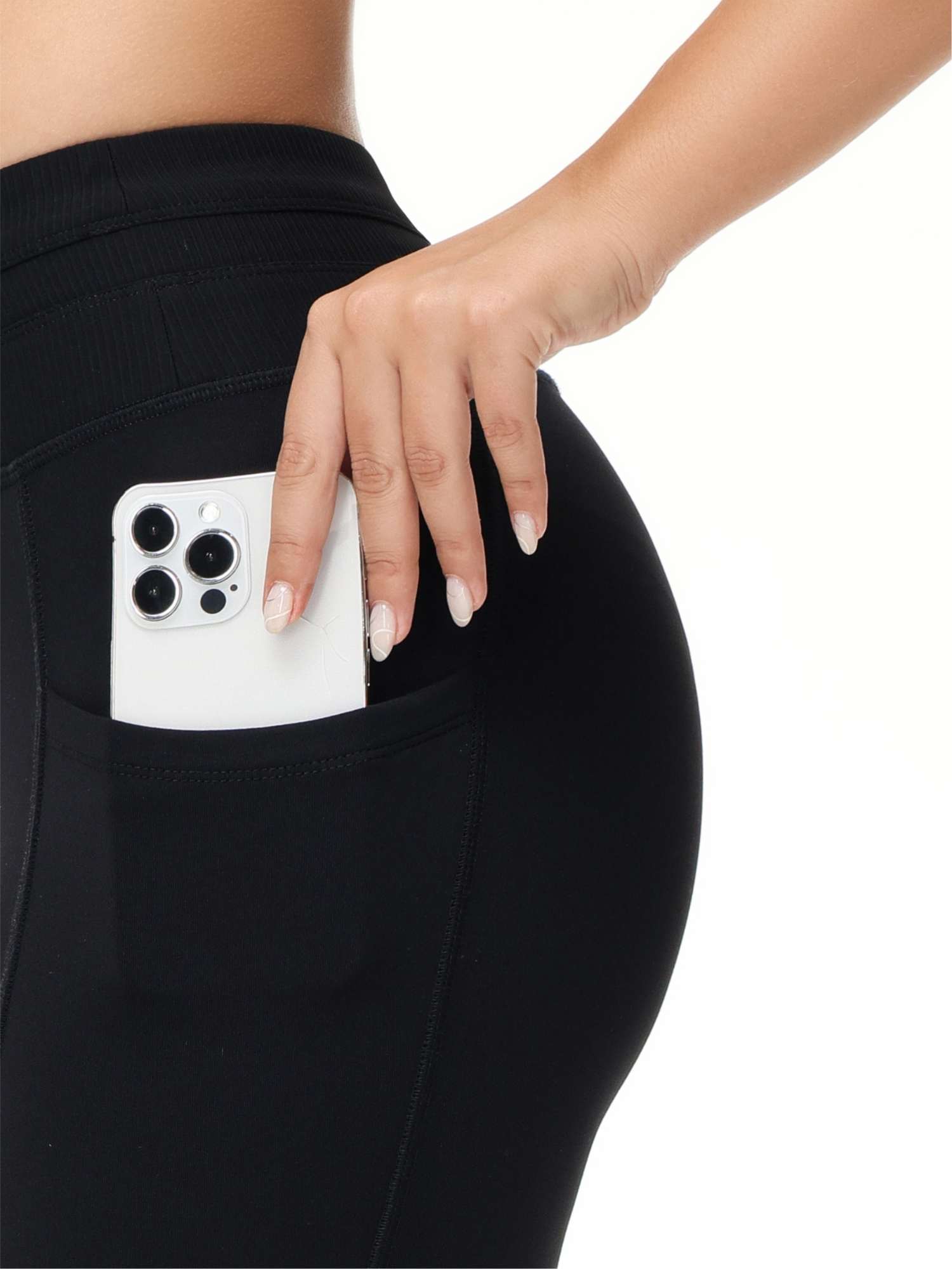 - Deep side pockets lie flat against your legs so they aren’t bulky like pockets on jeans. Seamless waistband with hidden pocket to store keys and cash