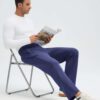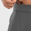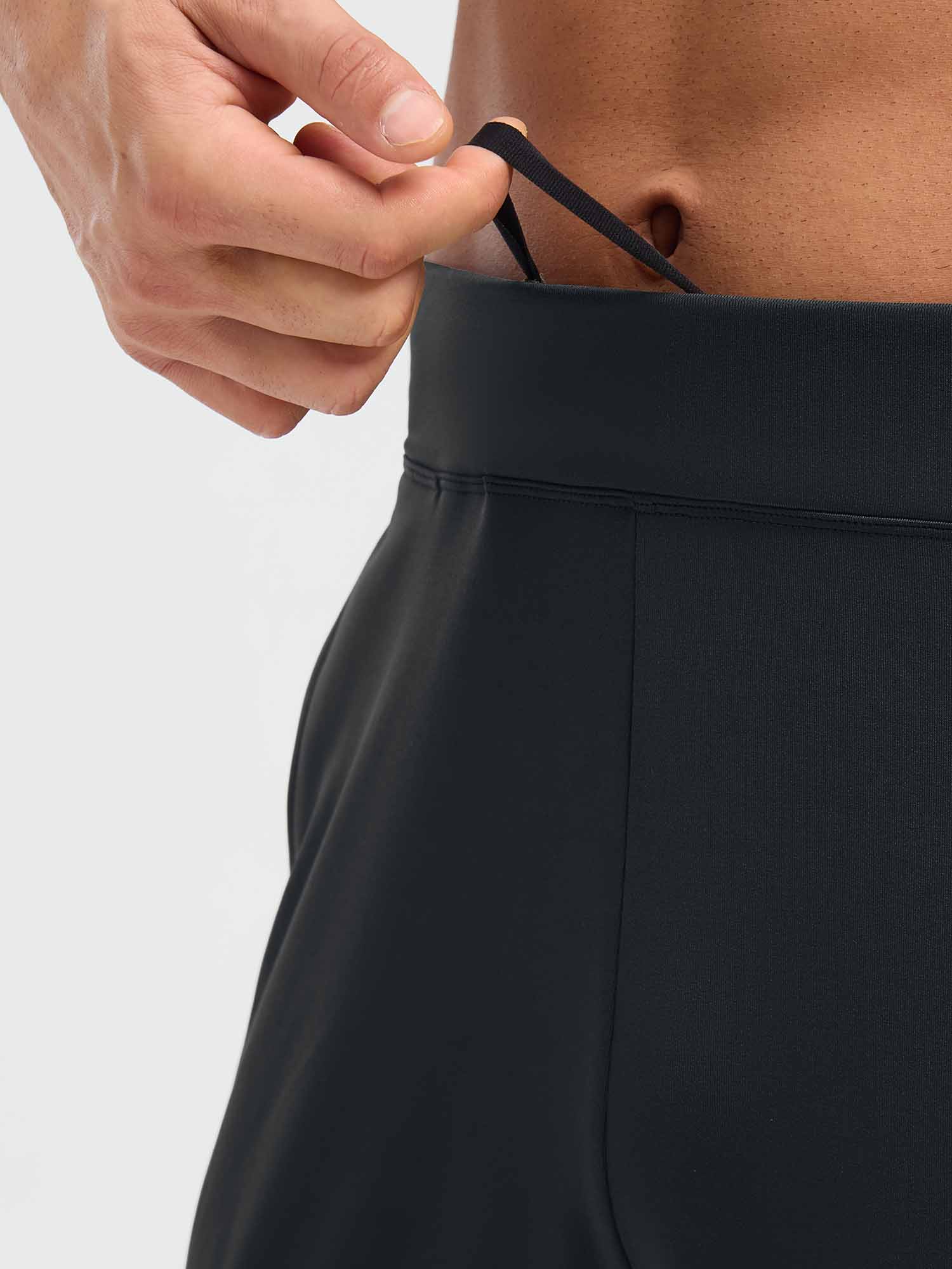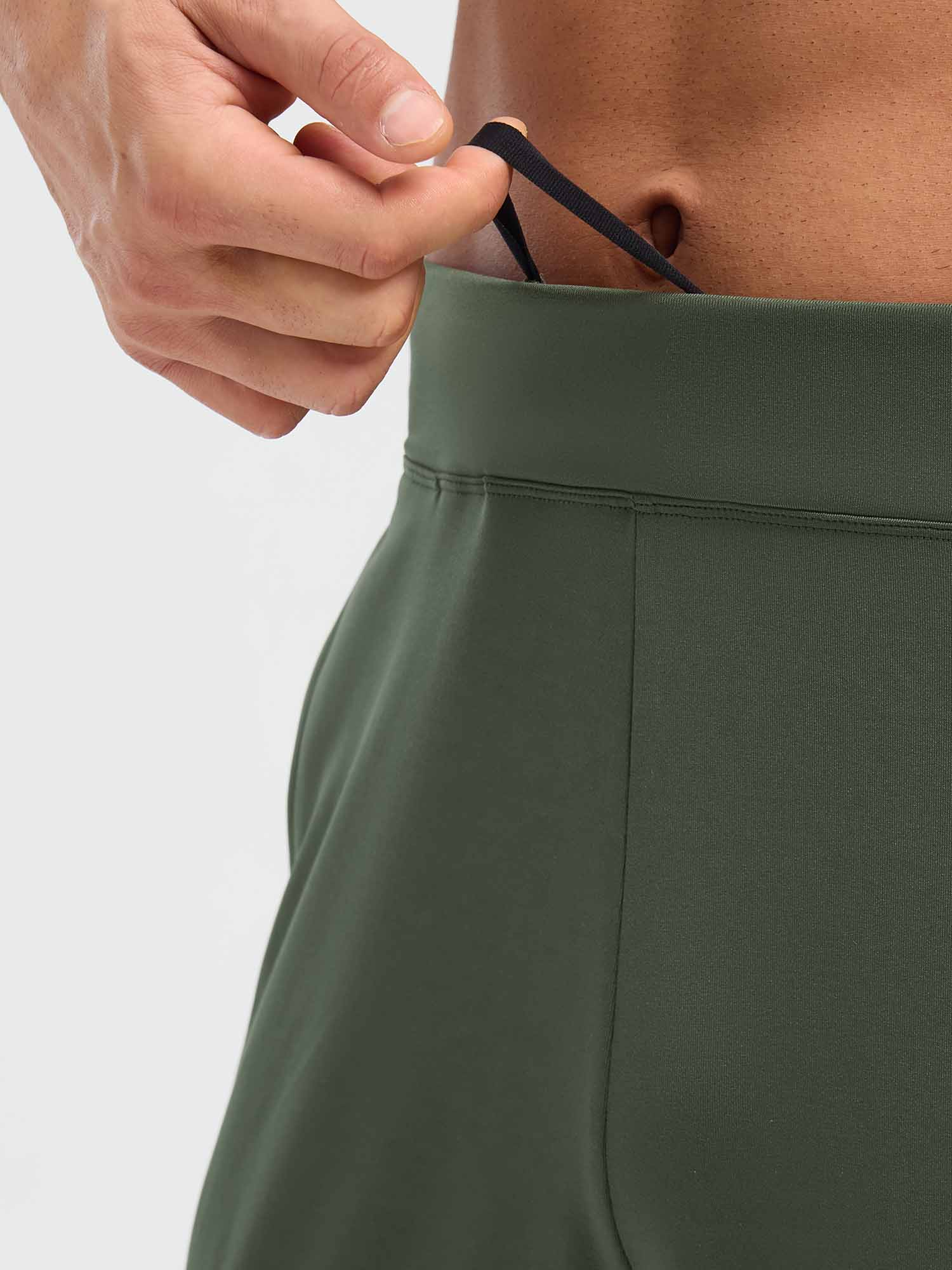 - High-rise elastic waistband with flat-front design for a comfortable. secure fit