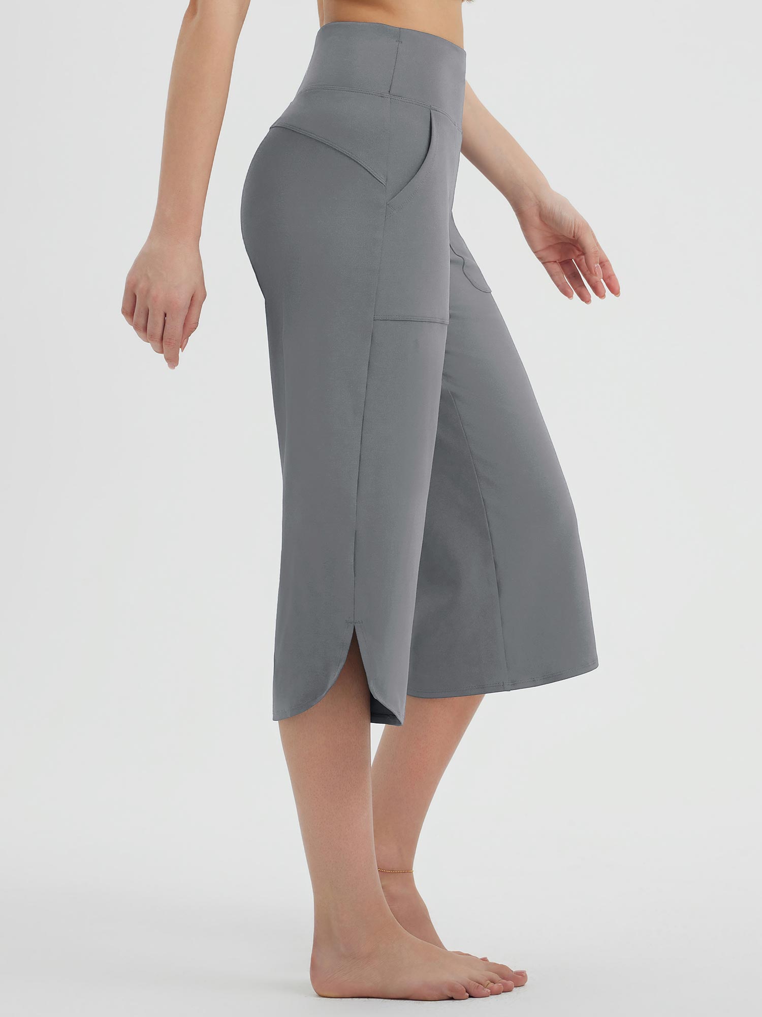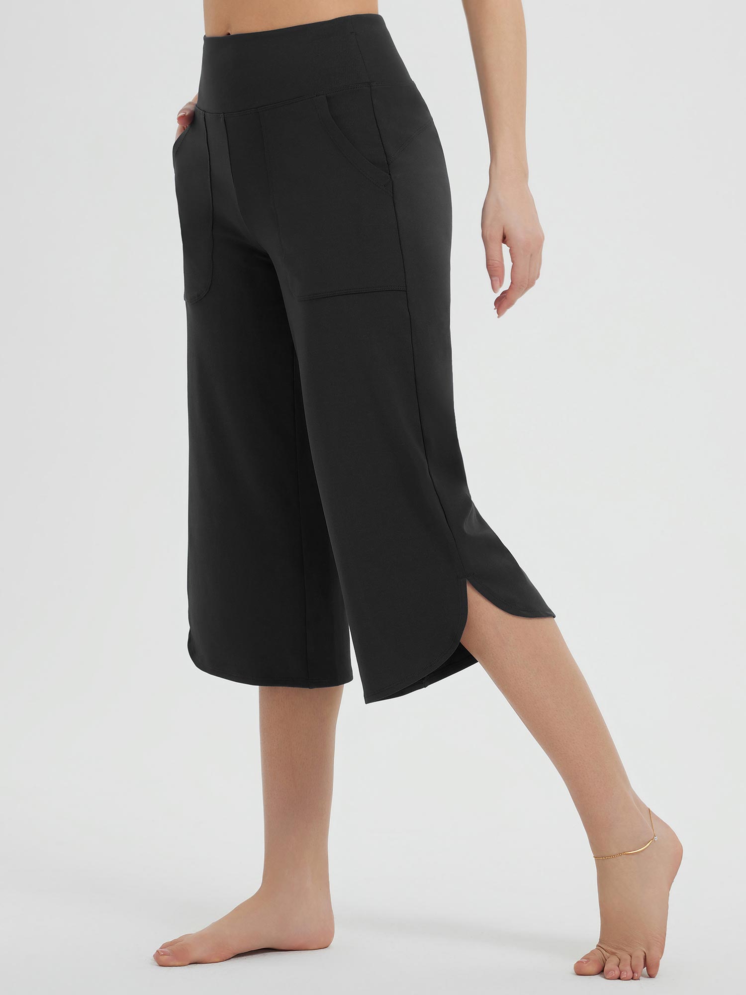 - Curved Hem Design: Wide straight leg with a curved split hem elongates the legs and allows for unrestricted movement.
