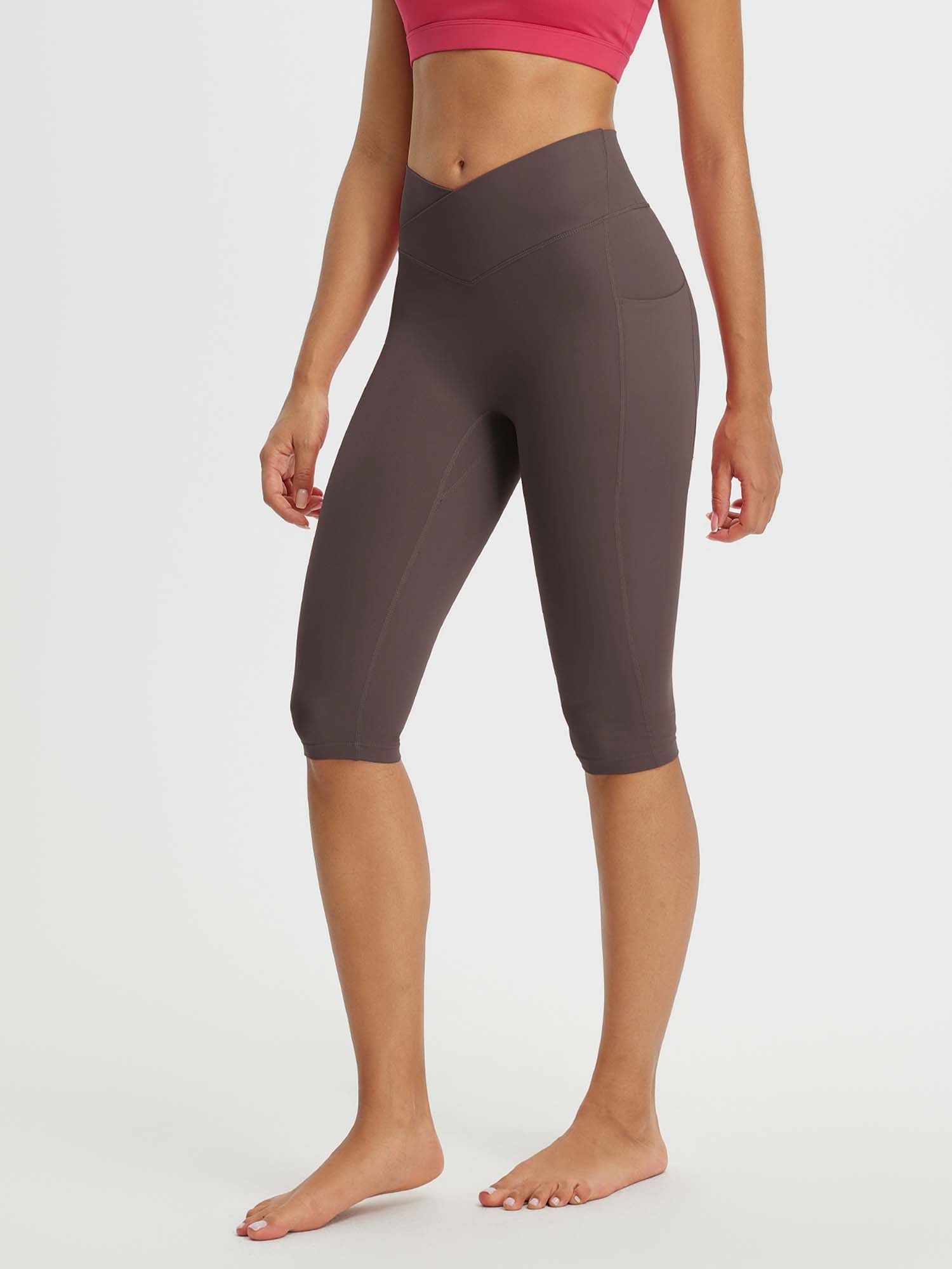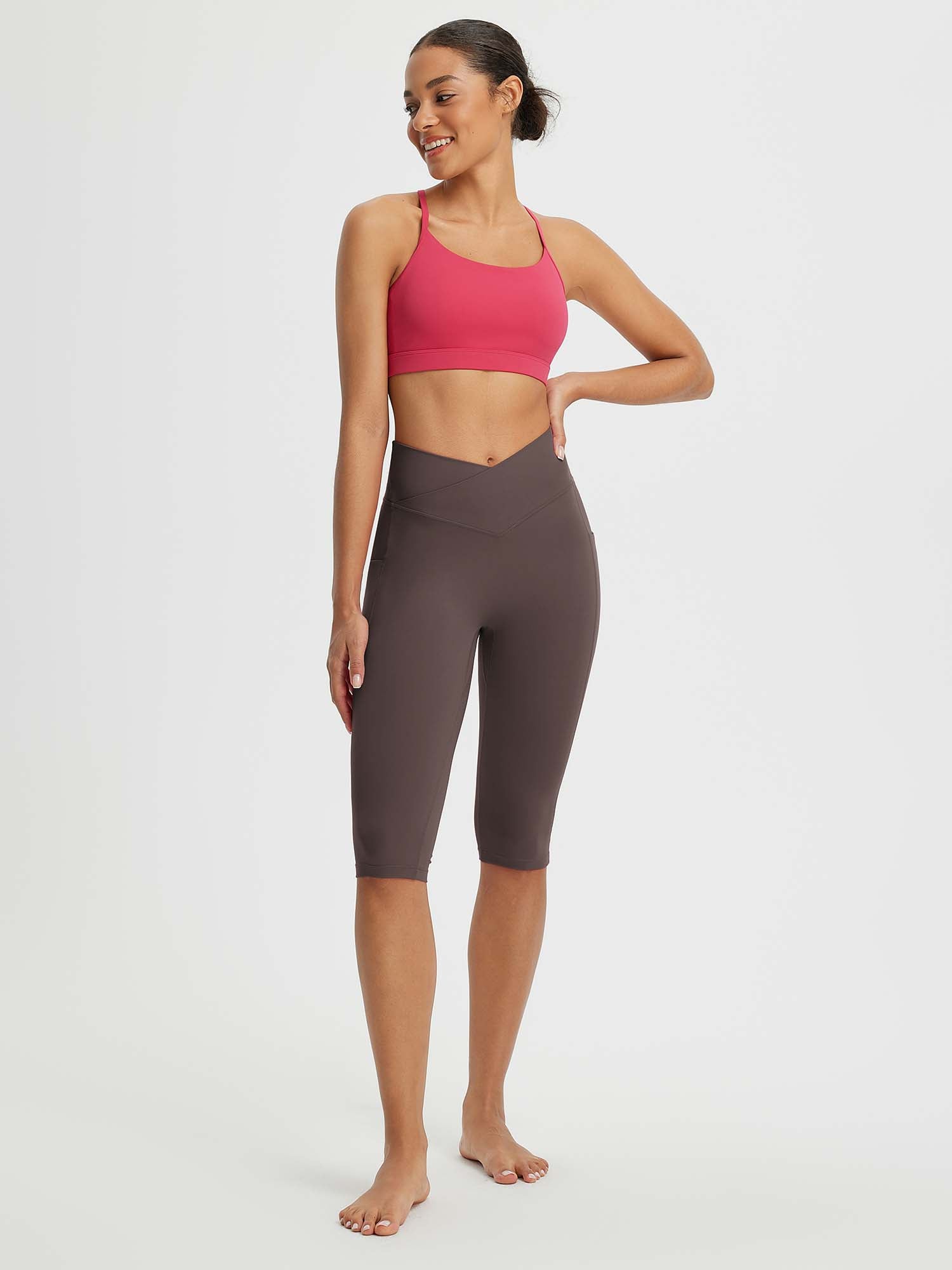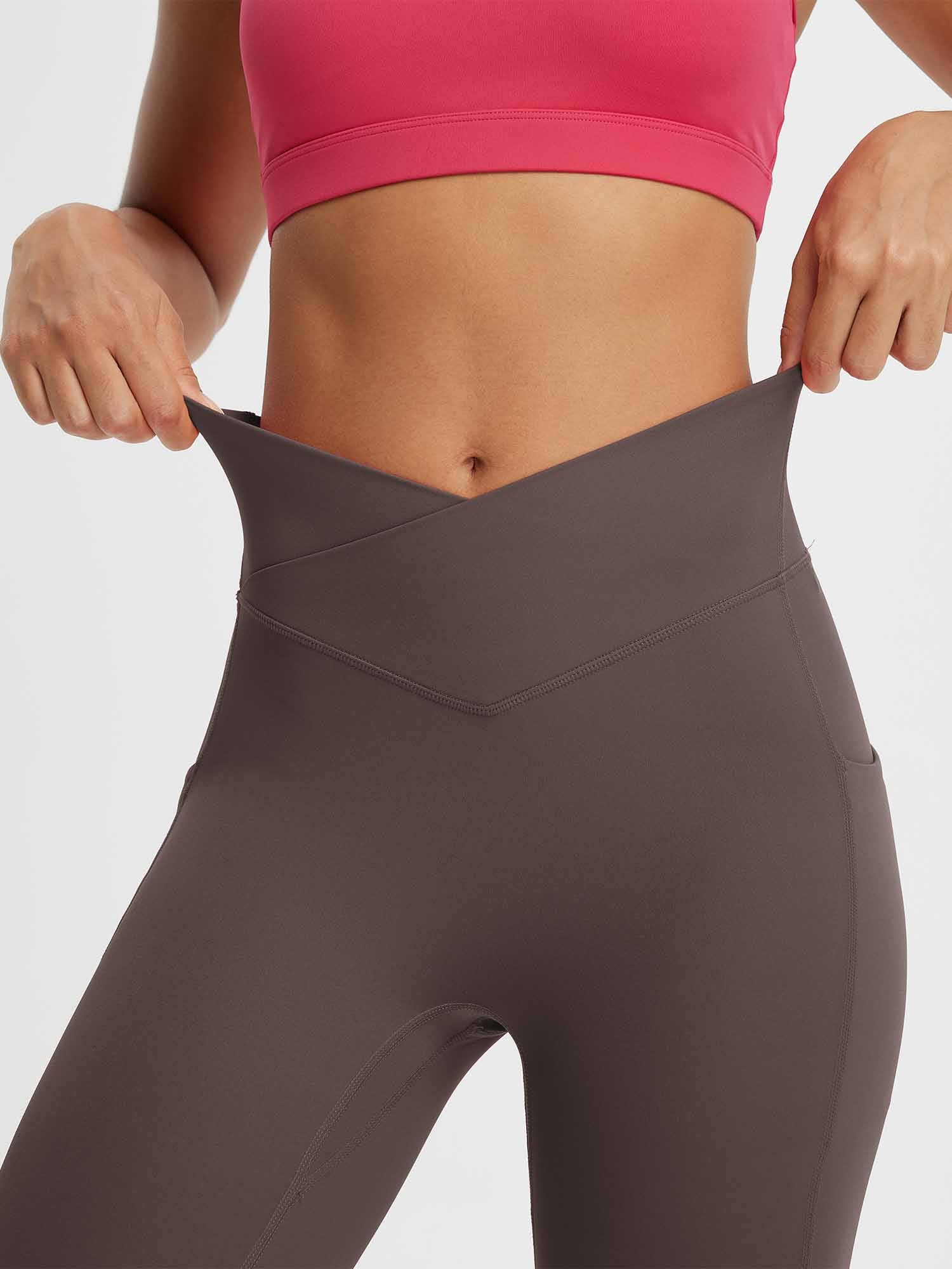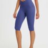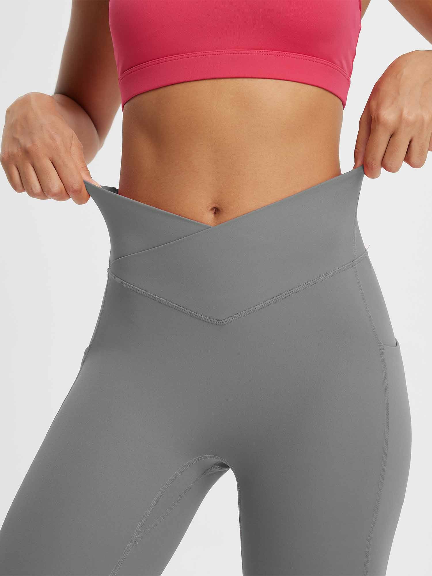 CROSSOVER WAISTBAND: Embrace the flattering embrace of our yoga capris. featuring a crossover waistband that not only accentuates your waistline but also banishes the ‘muffin top’ effect. ensuring a snug and comfortable fit around your hips