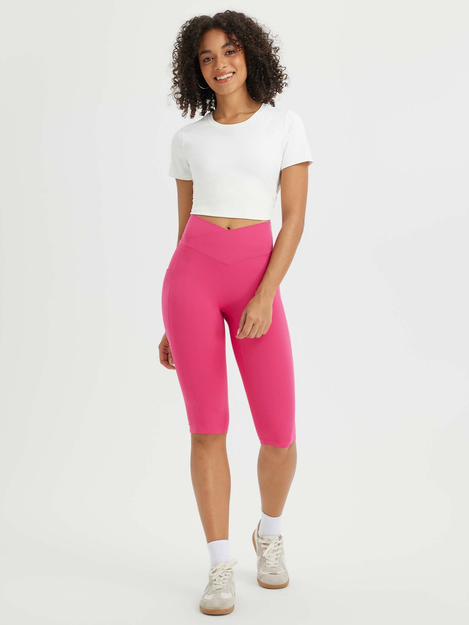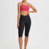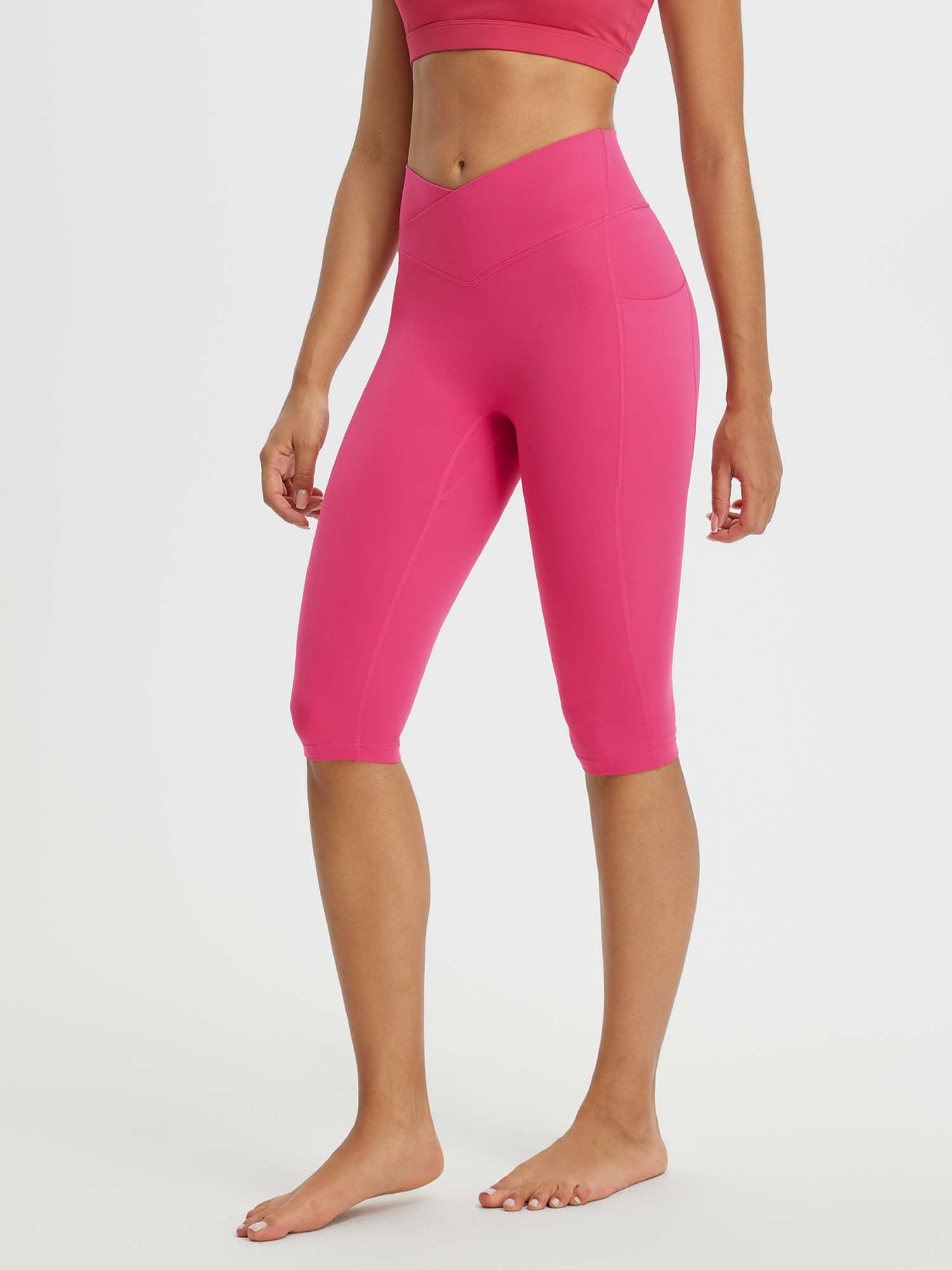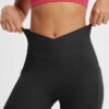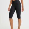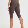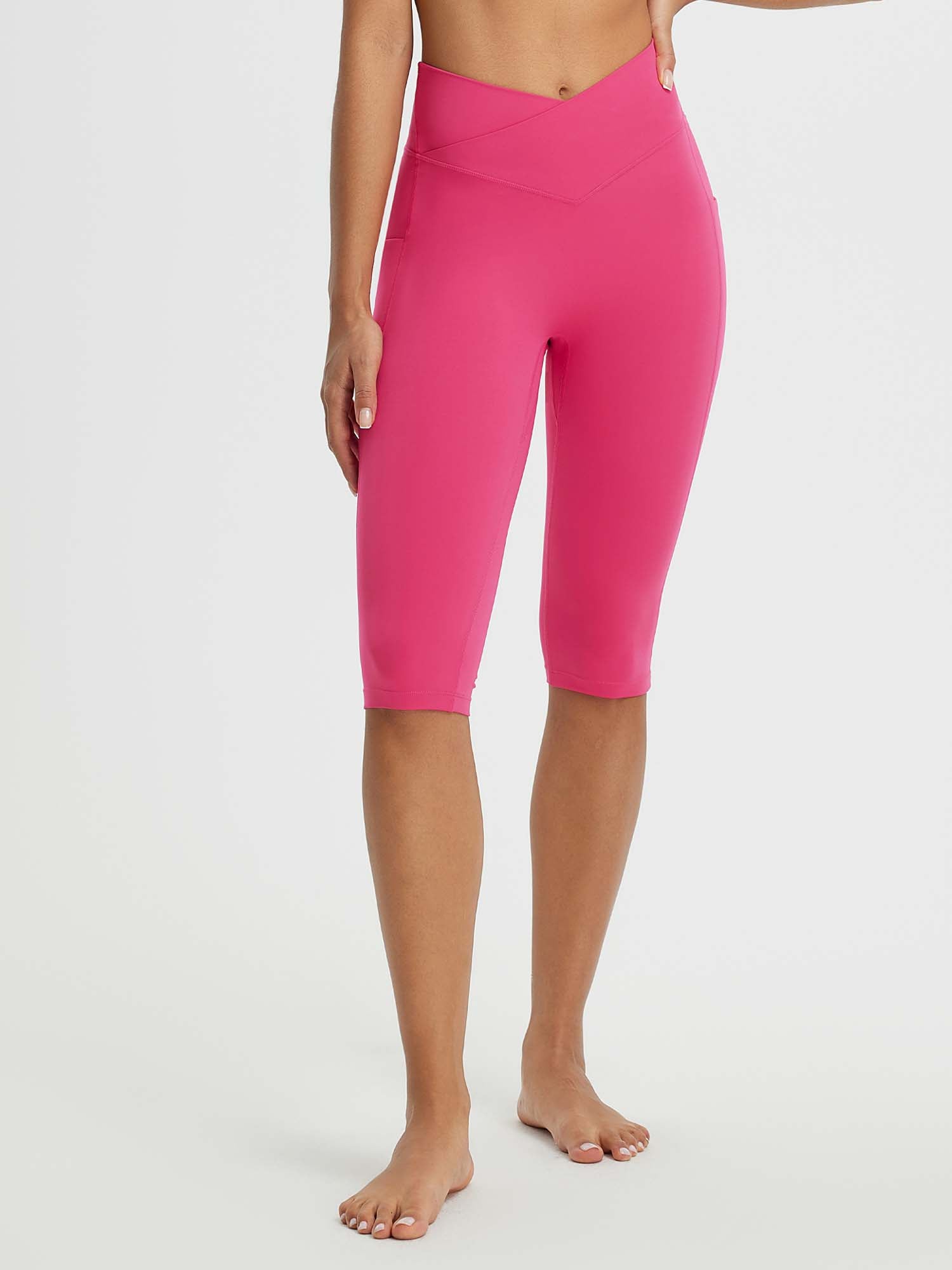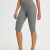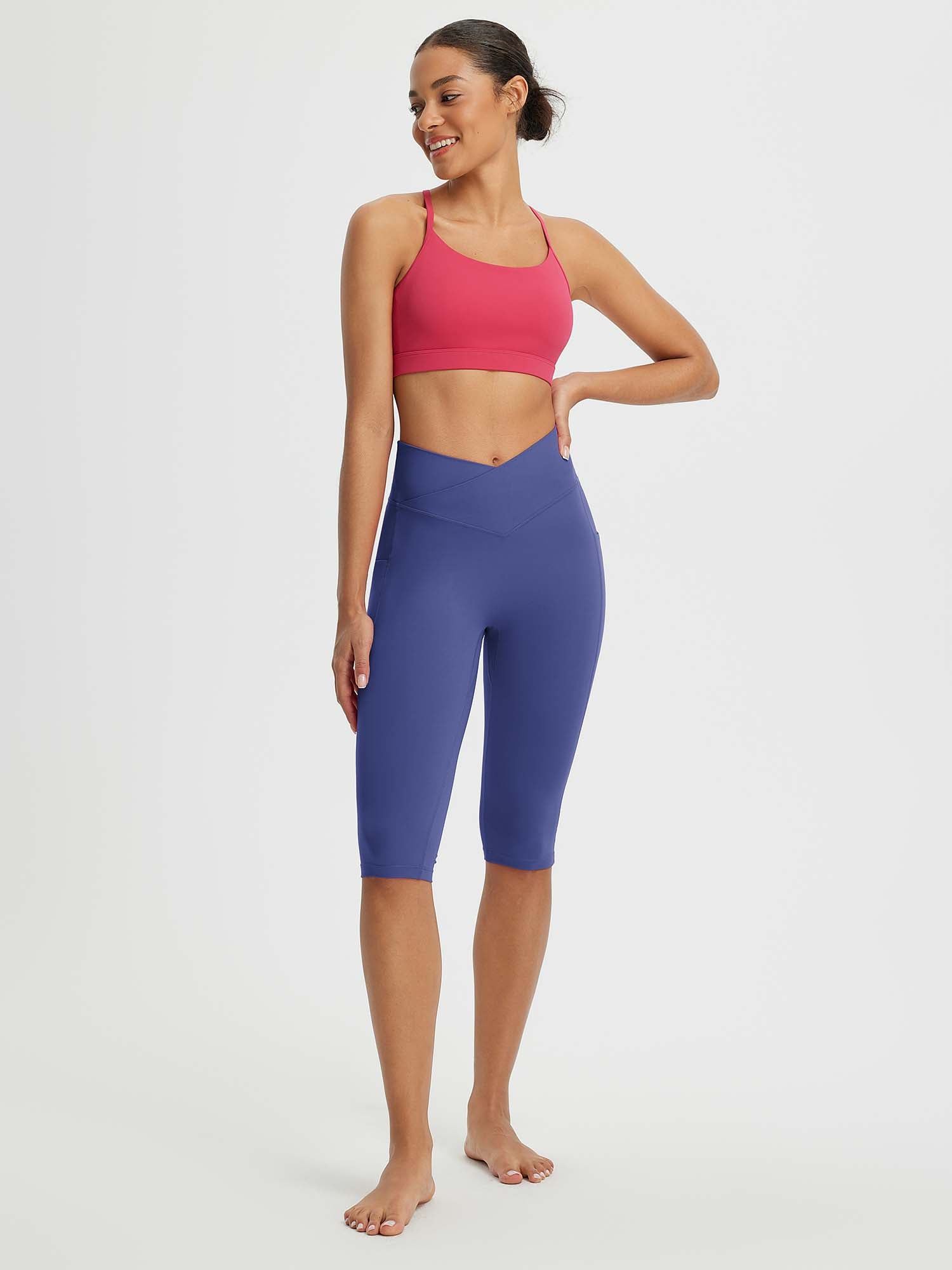 CROSSOVER WAISTBAND: Embrace the flattering embrace of our yoga capris. featuring a crossover waistband that not only accentuates your waistline but also banishes the ‘muffin top’ effect. ensuring a snug and comfortable fit around your hips