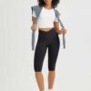 14 KNEE LENGTH: Capris strike the ideal balance at 14 inches. hitting right at the knee to offer a perfect blend of coverage and mobility. making them versatile for solo wear or as a stylish underlayer for dresses and skirts