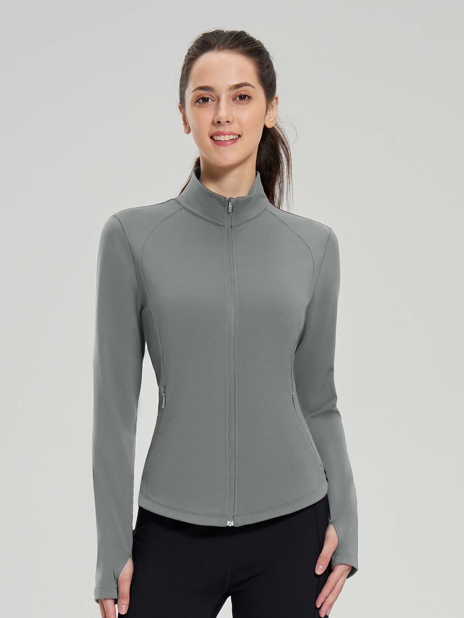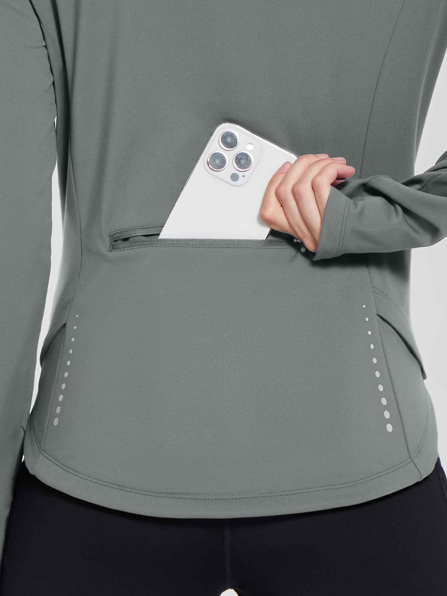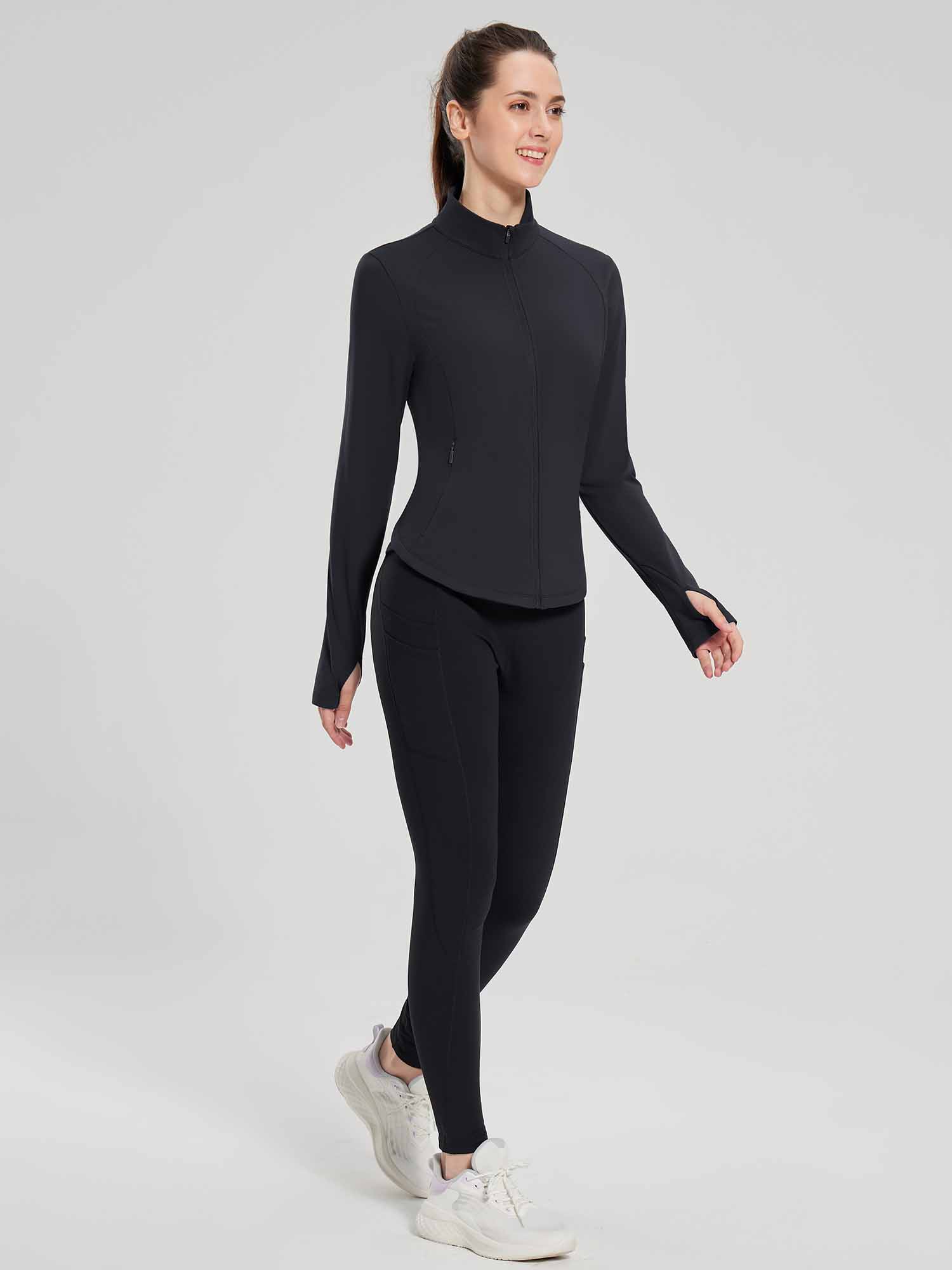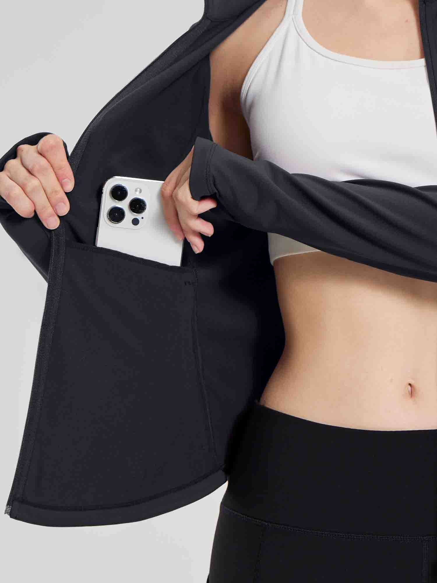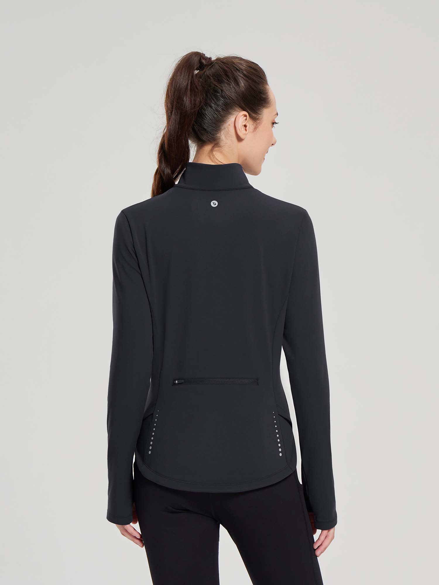 - Full Zipper: Full-zip style makes it easy to remove mid-run if you end up getting a little too warm. The length back design gives you a flattering silhouette and shows your curves