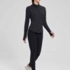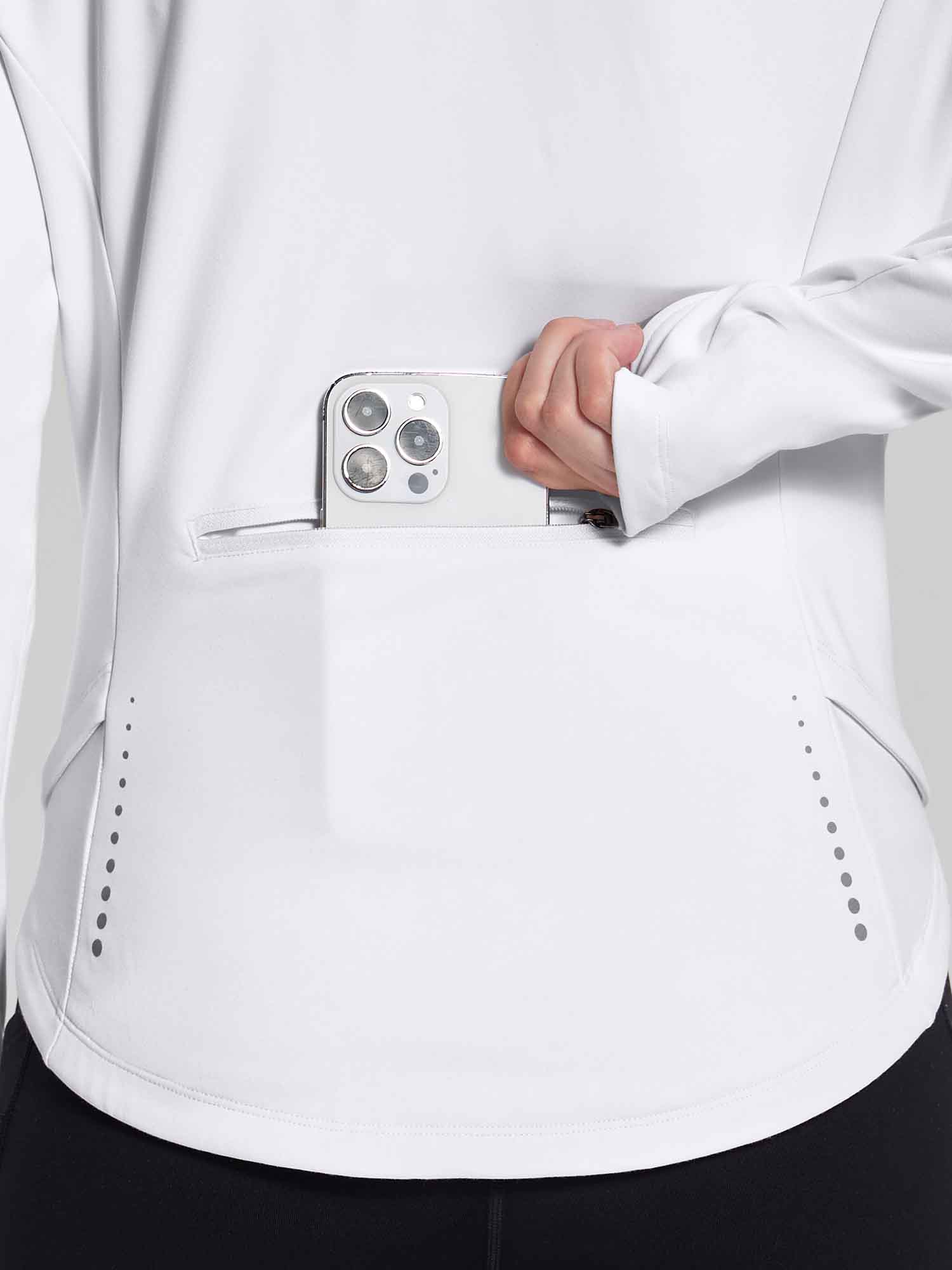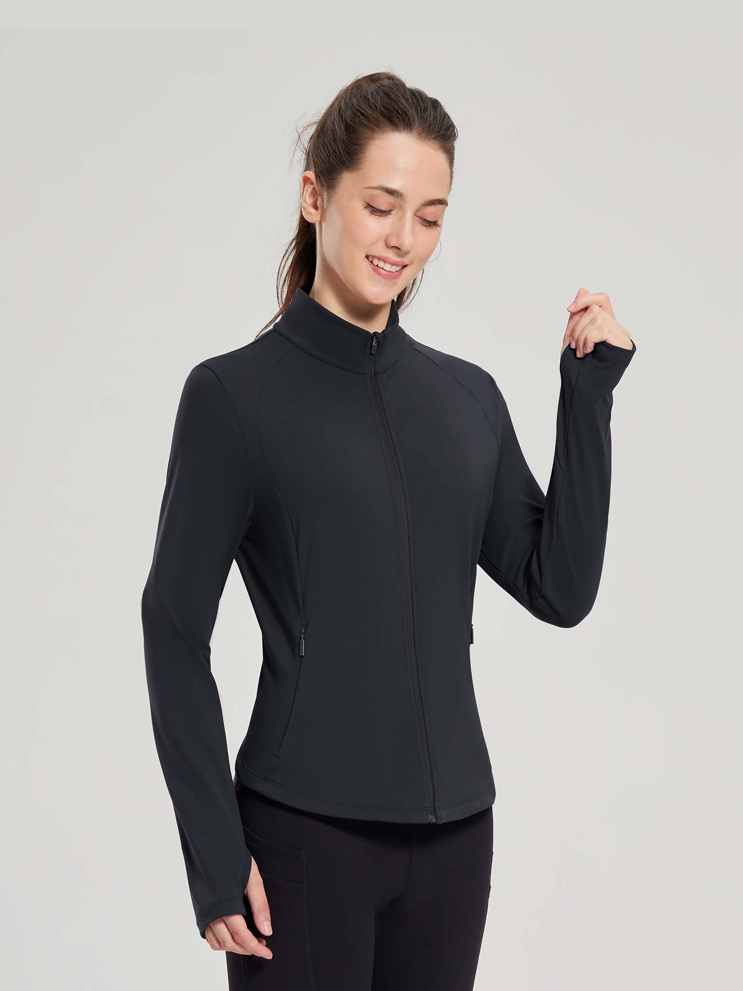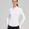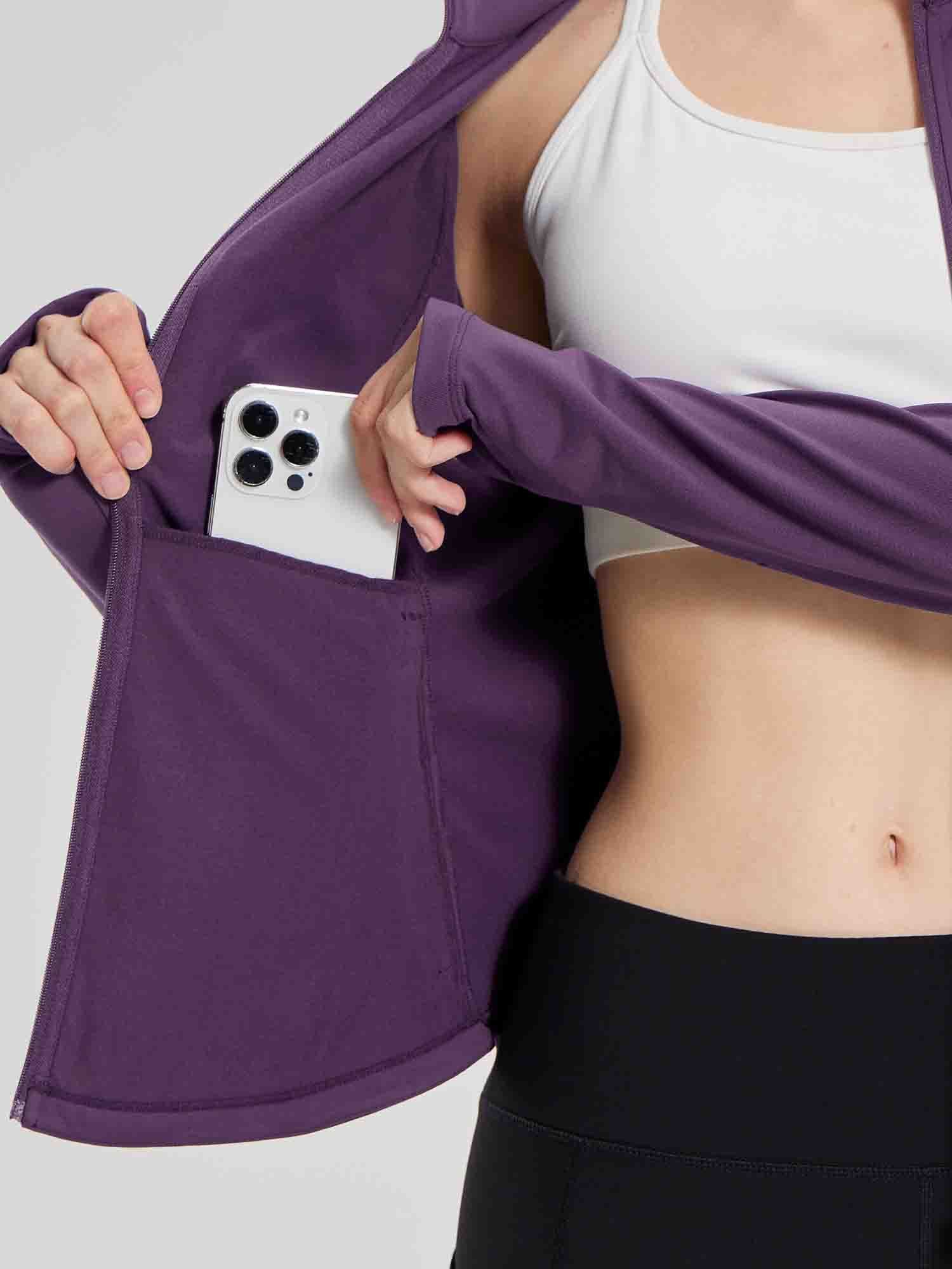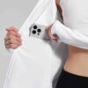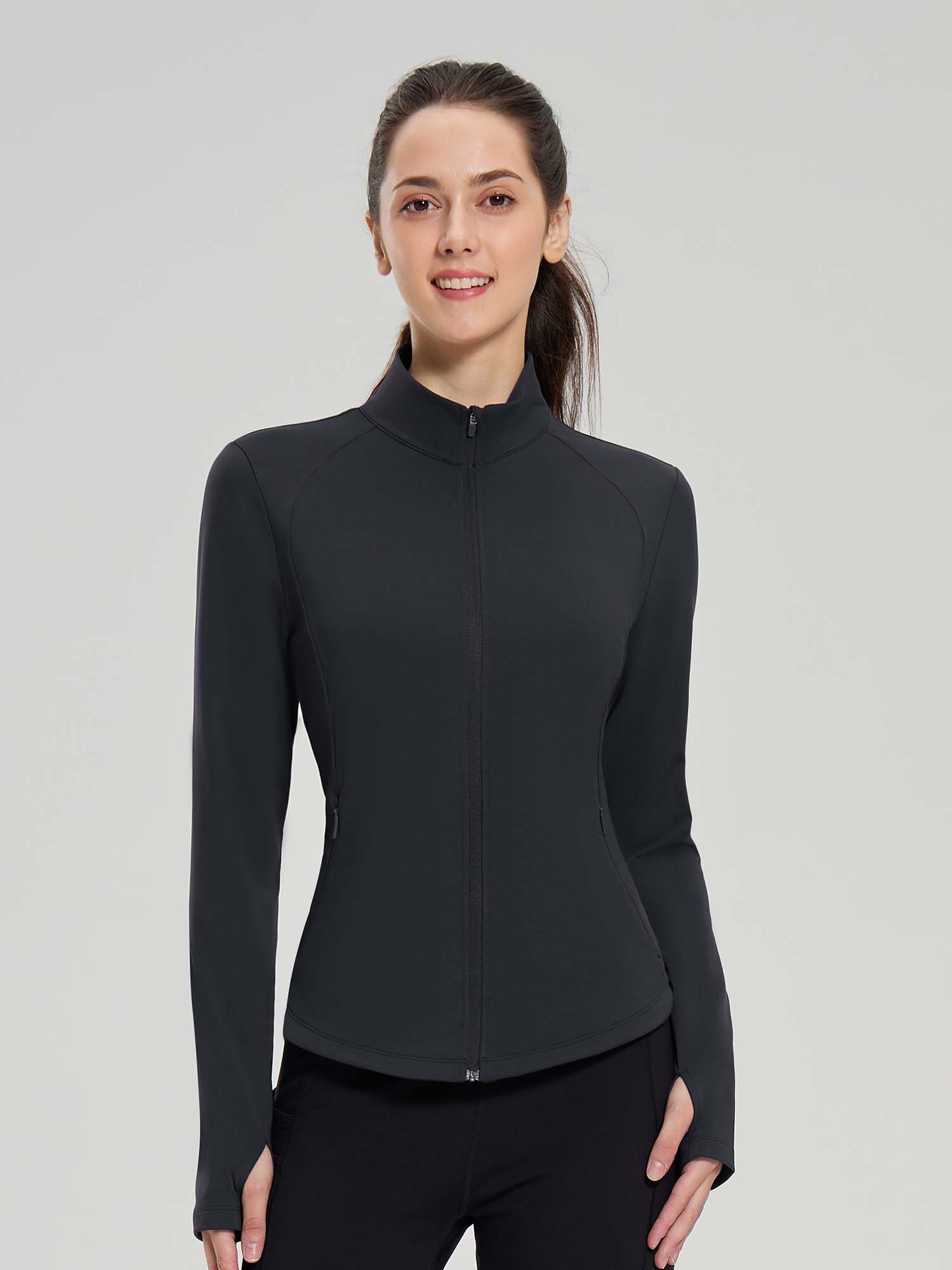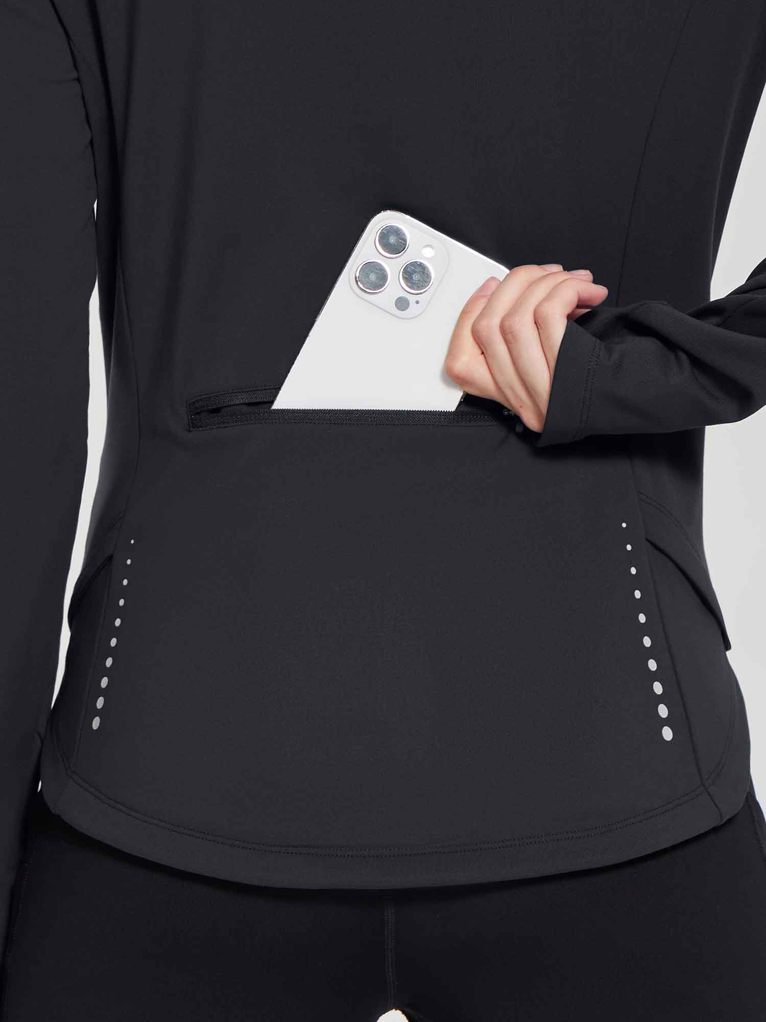 - Full Zipper: Full-zip style makes it easy to remove mid-run if you end up getting a little too warm. The length back design gives you a flattering silhouette and shows your curves
