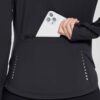 - Thumb Holes: These women’s running jackets are designed with a high collar and thumbholes to help keep your sleeves down and guard against wind chill. Hidden underarm mesh vents provide ventilation and prevent overheating