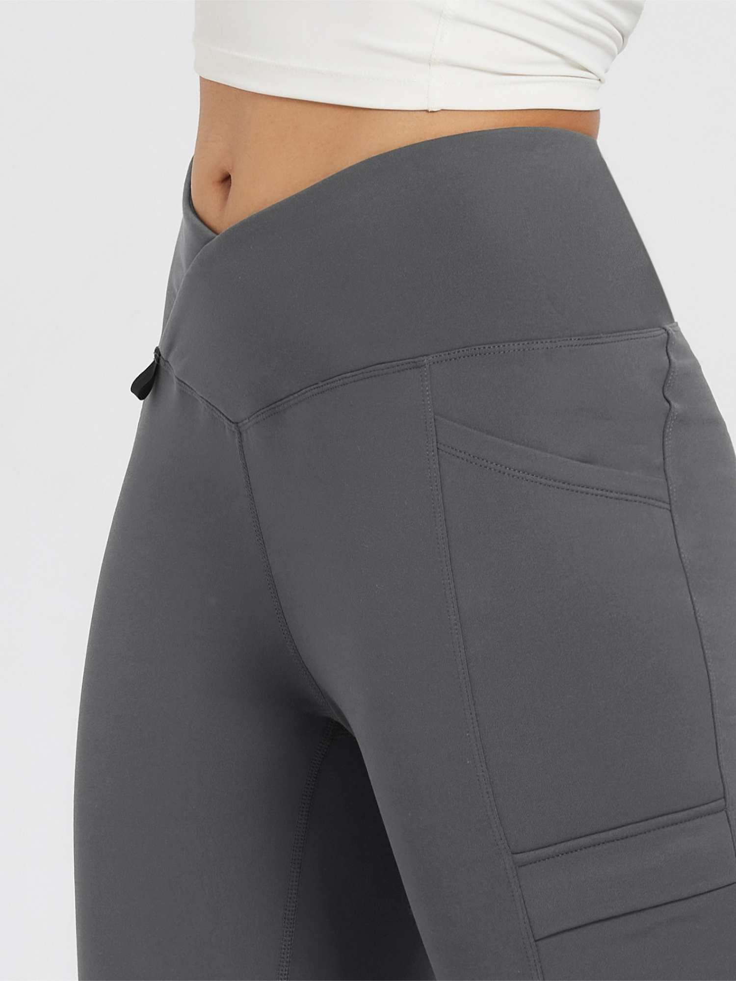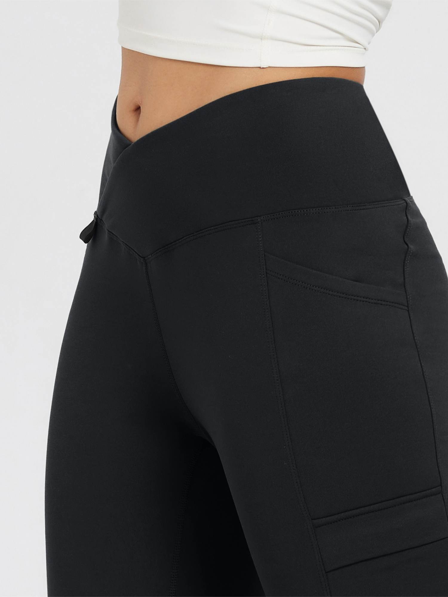 - High-rise V crossover waistband for a flattering fit