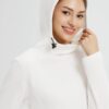 • High-neck hood with adjustable drawstring for warmth and fit