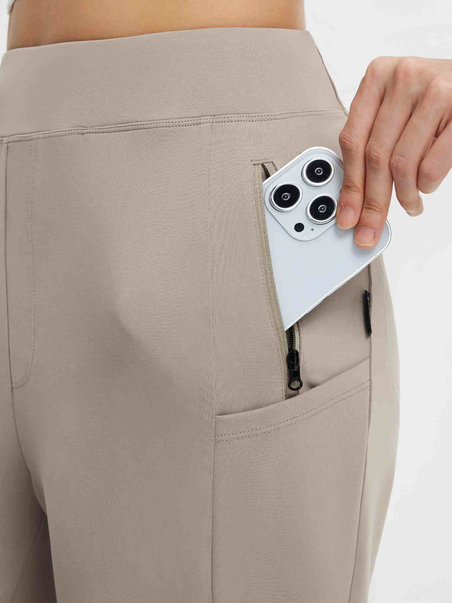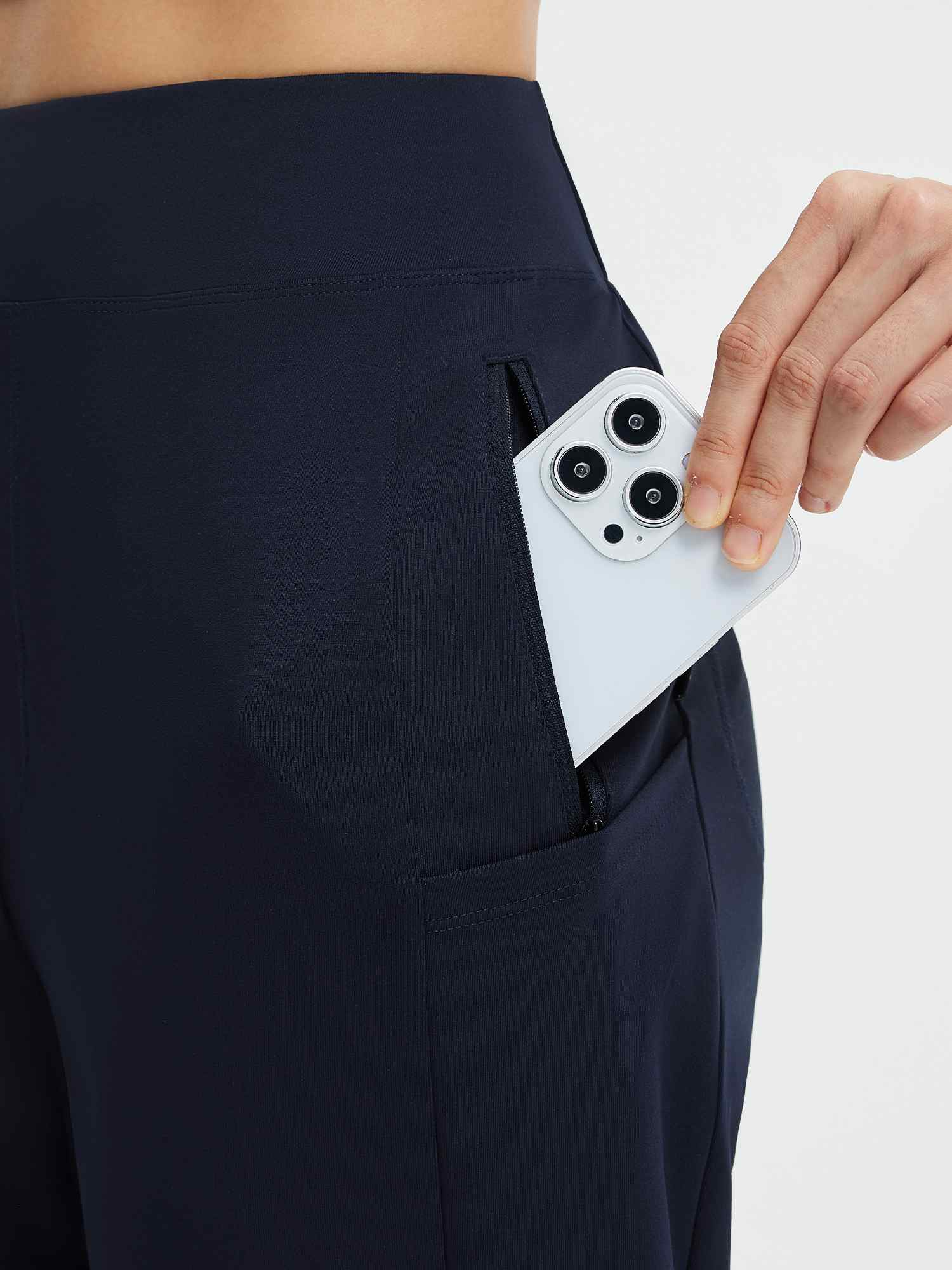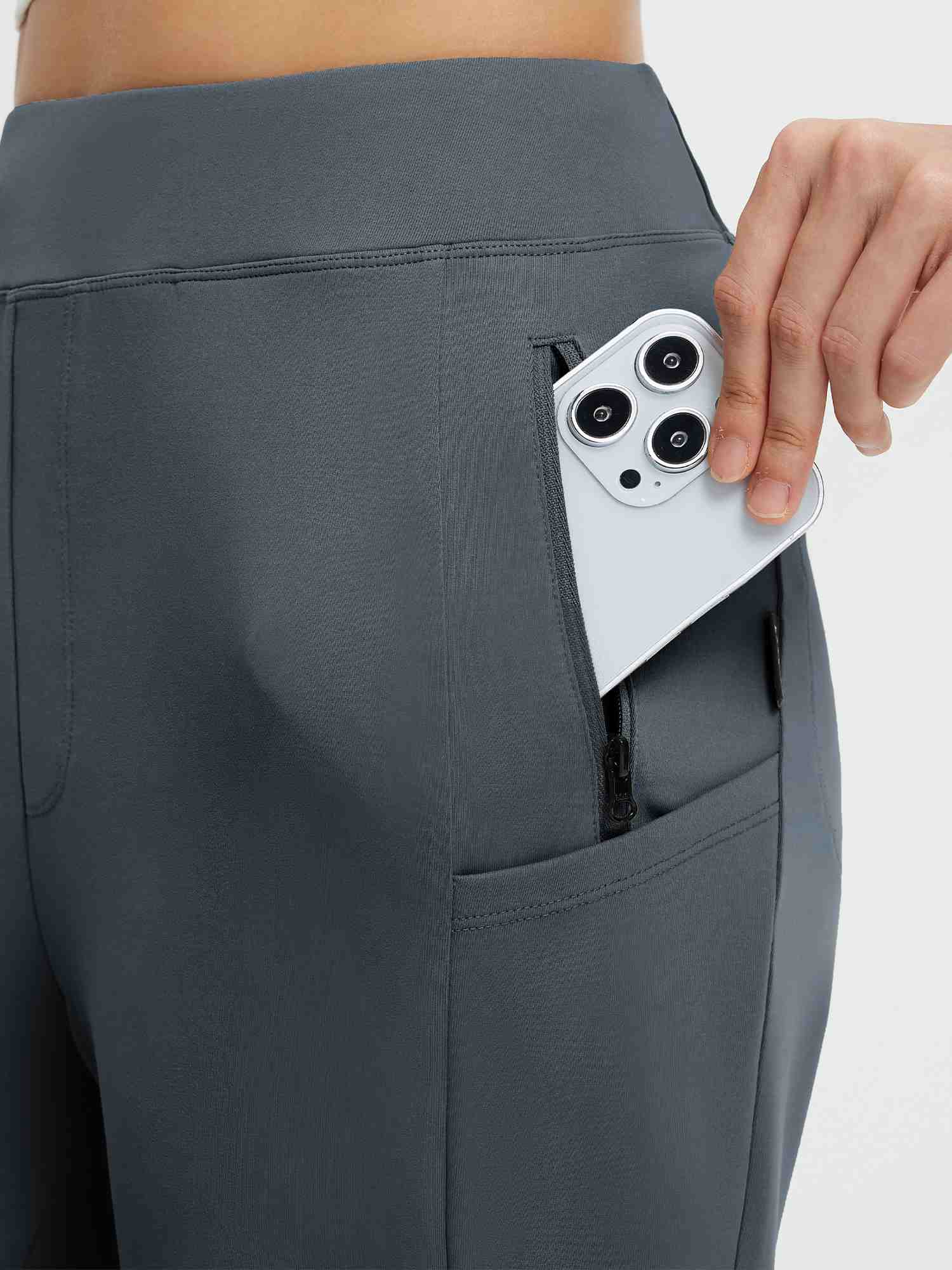 6-pocket design: 2 zippered thigh pockets for valuables. 2 angled side pockets for phone and keys. 2 hidden back pockets for wallet and essentials